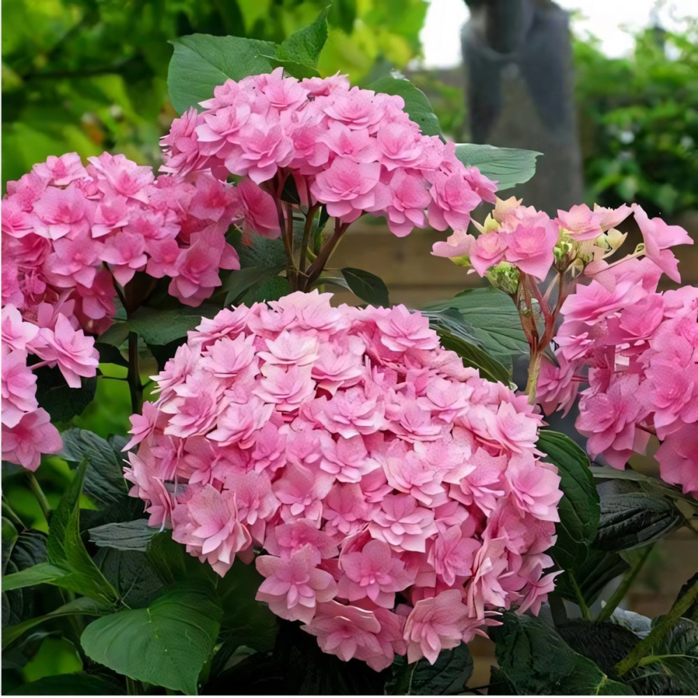Непрерывное цветение с апреля по сентябрь. Цветки очень элегантные, махровые, похожи на кувшинки. В начале цветения в окраске присутствуют бледно-кремовые тона, что создаёт двухцветный эффект. Цветет на побегах прошлого и текущего года. На кислых почвах преобладает фиолетово-сиреневые отттенки, на щелочных- розовые. Побеги крепкие, не гнутся даже после дождя.