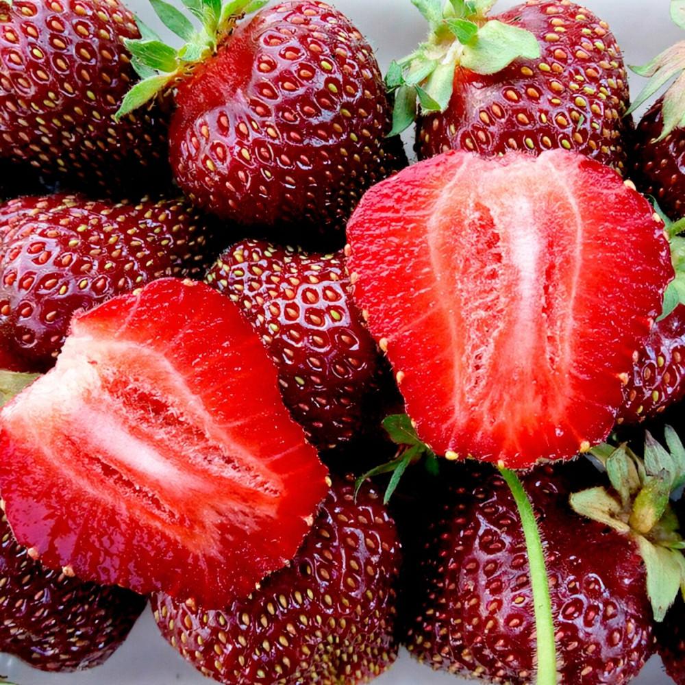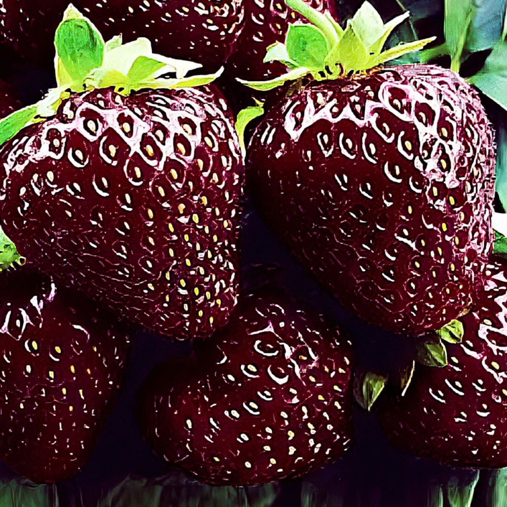 Ягоды усечённой конической формы, очень крупные вес достигает до - 30 граммов, сочные, ароматные, с блеском. Цвет плодов тёмно-вишнёвый, приближающийся к чёрному. Семена крупные, тёмного цвета, выделяющиеся на поверхности плода. Вкус ягод сладкий, с еле заметной кислинкой. Мякоть довольно плотная, не содержит пустот, благодаря чему плоды долго хранятся и хорошо переносят транспортировку. Её можно есть в неограниченном количестве даже при диатезе, который особенно часто наблюдается у детей. Вообще, большой парадокс клубника является весьма сладкой ягодой, но она уменьшает количество сахара в крови. Поэтому питаться клубникой можно даже при сахарном диабете.