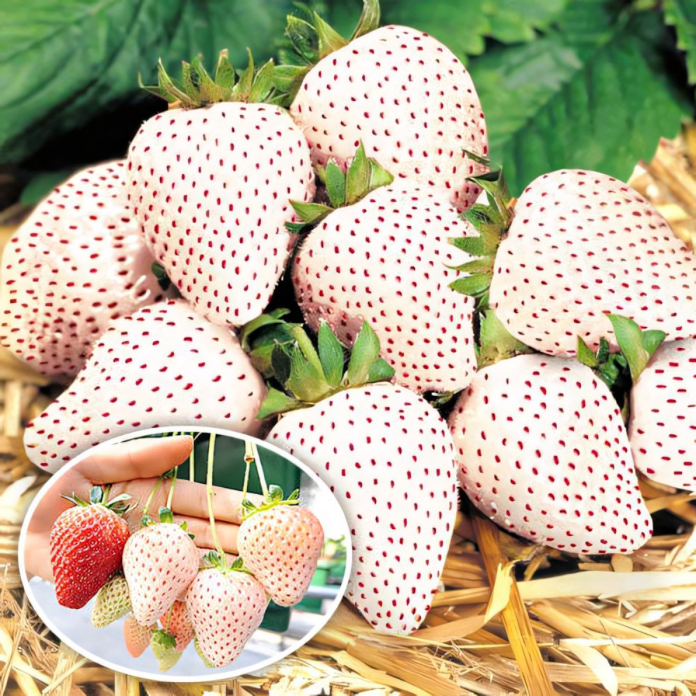 Десертная, нежная и сочная клубника. Кустики, выращенные в тени, дают урожай белоснежных ягод с вкраплениями розовых зерен. Вкус насыщенный, земляничный с ярко выраженным ароматом ананаса. Сорт раннеспелый, первый урожай снимается в конце мая.