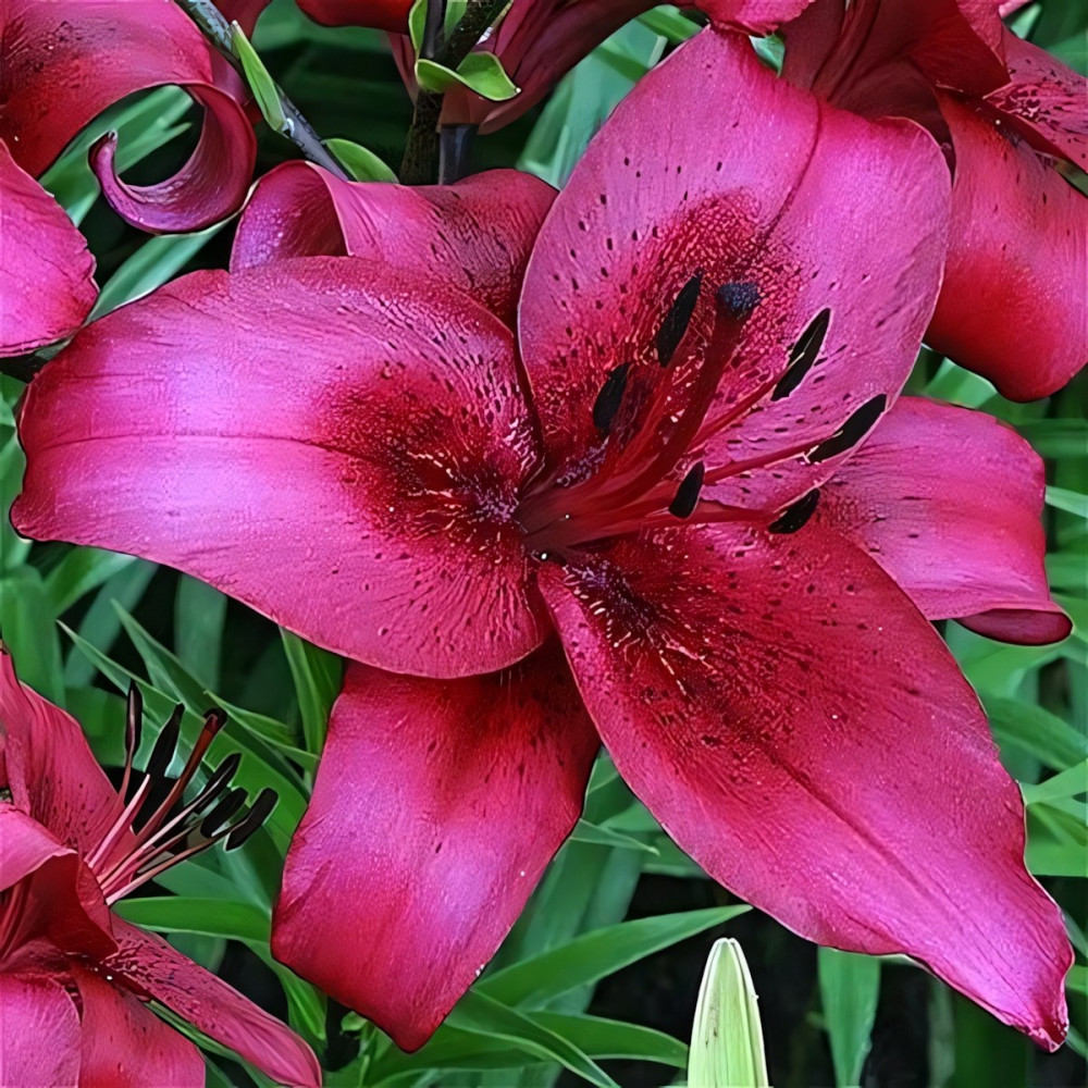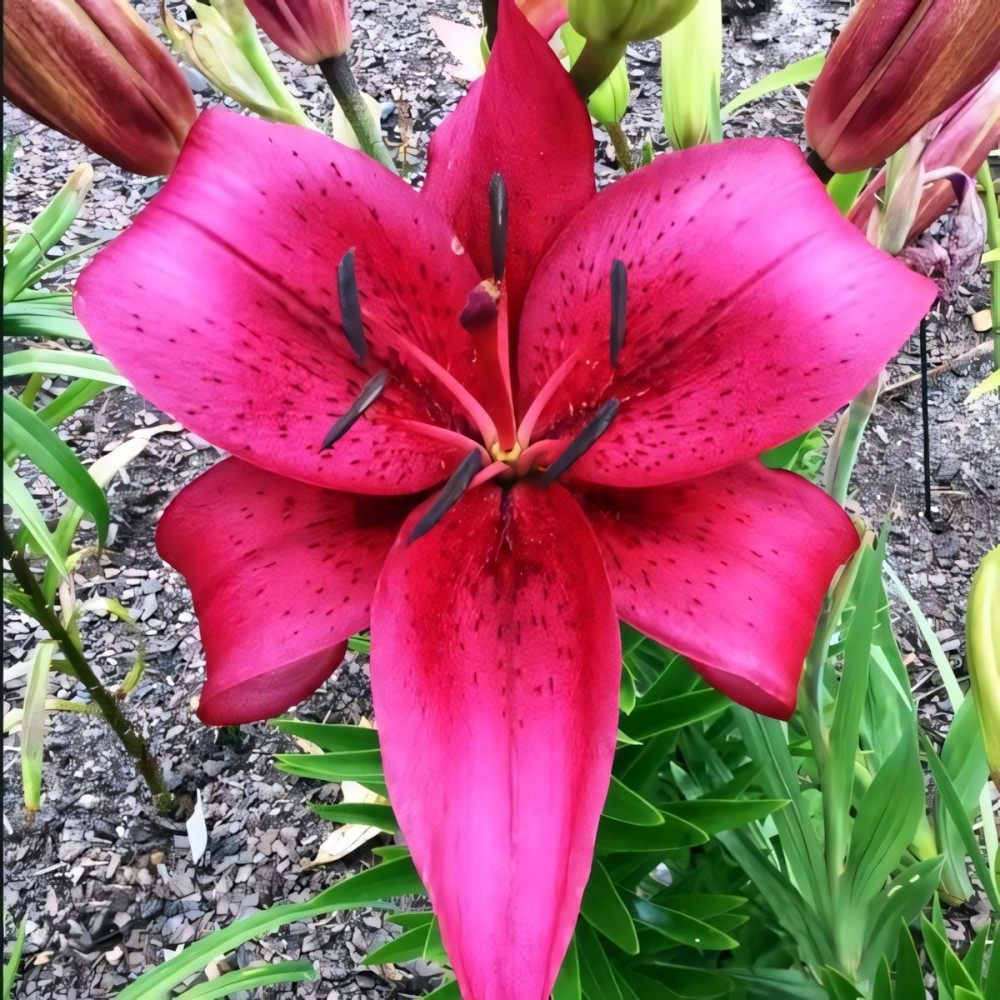 | Стандарт поставкиЛуковица в торфе | Цвет цветкасиренево-малиновый с темным крапом |