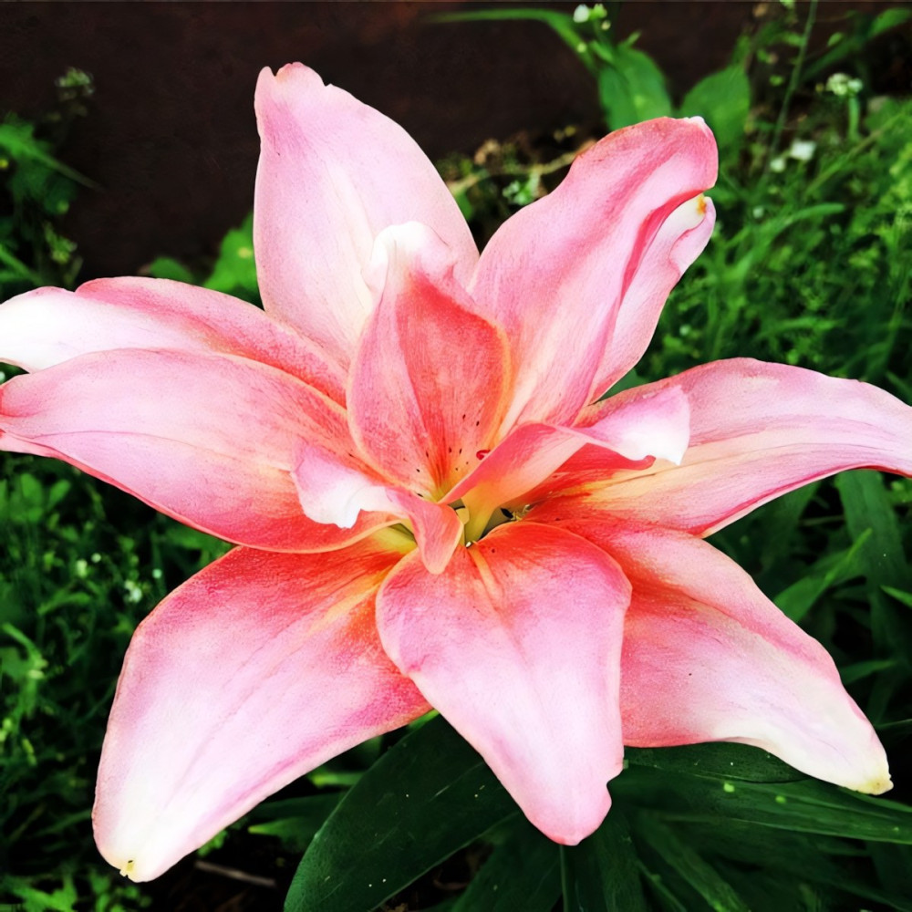 Цветок крупного размера, пышный, нежно-розового цвета без вкрапления. Растение среднерослое, стебель прямостоячий, крепкий. Неприхотливая и в то же время очень привлекательная лилия. Цветение длительное.