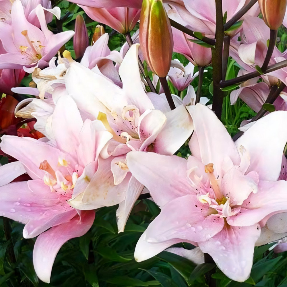 Такой сорт лилии произошел от своих дикорастущих родственников. Они располагались в резко континентальном климате, где жаркое лето и холодная зима. Поэтому он хорошо приспосабливается в климате средней полосы. Длинные зеленые стебли имеют коричневые штрихи, окруженные густой листвой. Украшает растительность великолепный кремово-розовый цветок, который дополняют розовые кантики и кончики. Лилия растет вверх и в бок.
