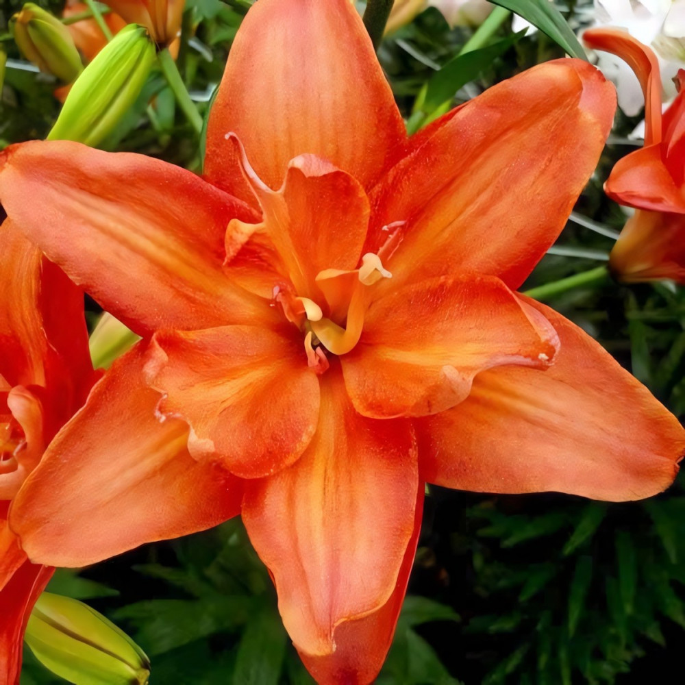 Еще один удивительный сорт лилий, который просто заворожит Вас своим огненно-оранжевым цветом. Этот вид лилии действительно красив, так как цветы большие и очень сильно выделяются среди других растений на любом приусадебном участке. Данный вид также любит солнечный свет, поэтому желательно его сажать именно в таких местах. В цвету Ceb Latte (Кеб Латте) неотразима!