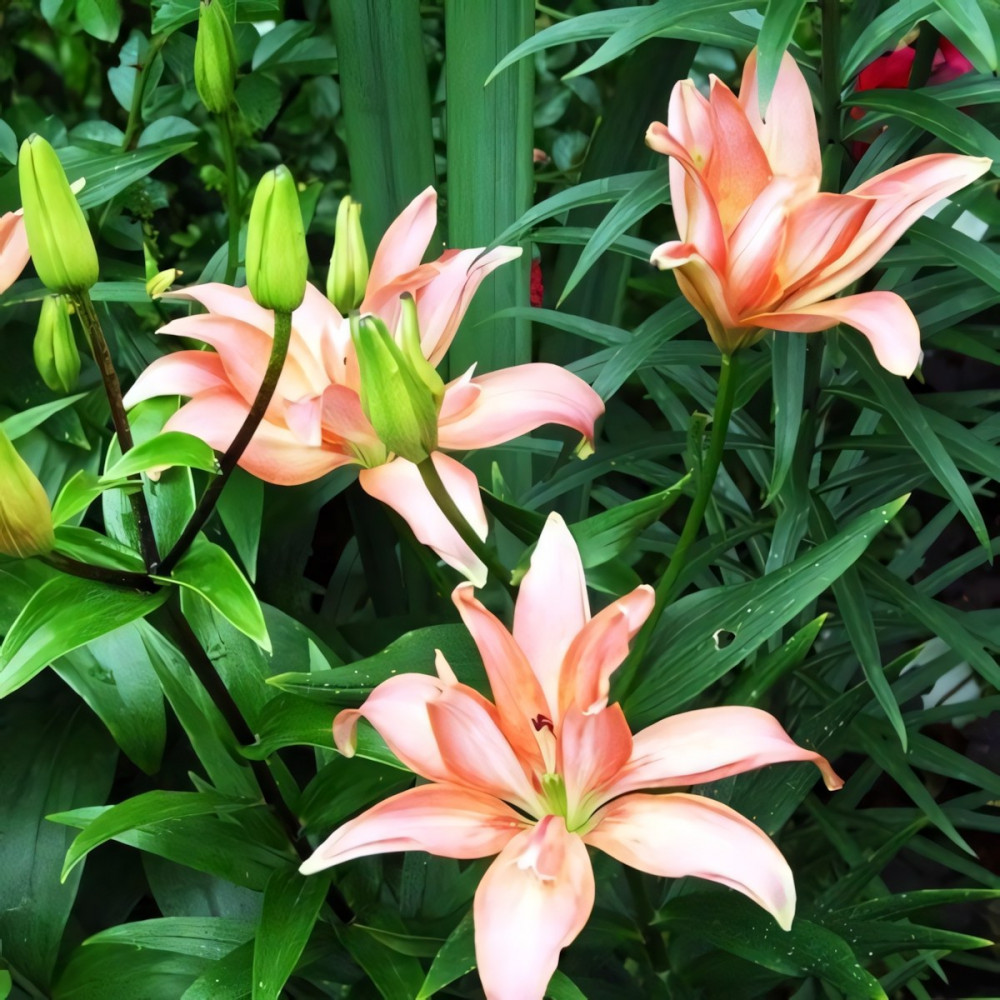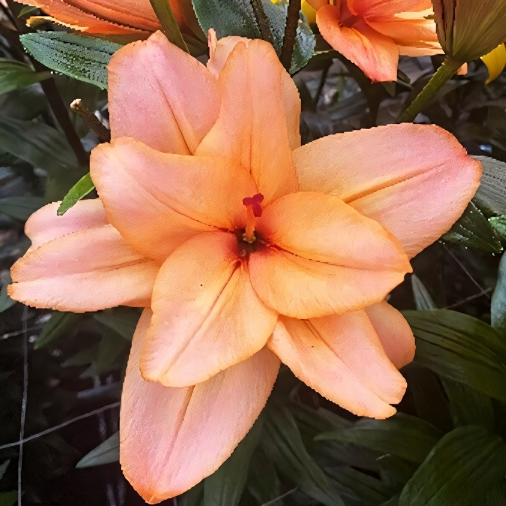 | Период цветенияиюль-август | Стандарт поставкиЛуковица в торфе | Цвет цветкалососево-абрикосовый |