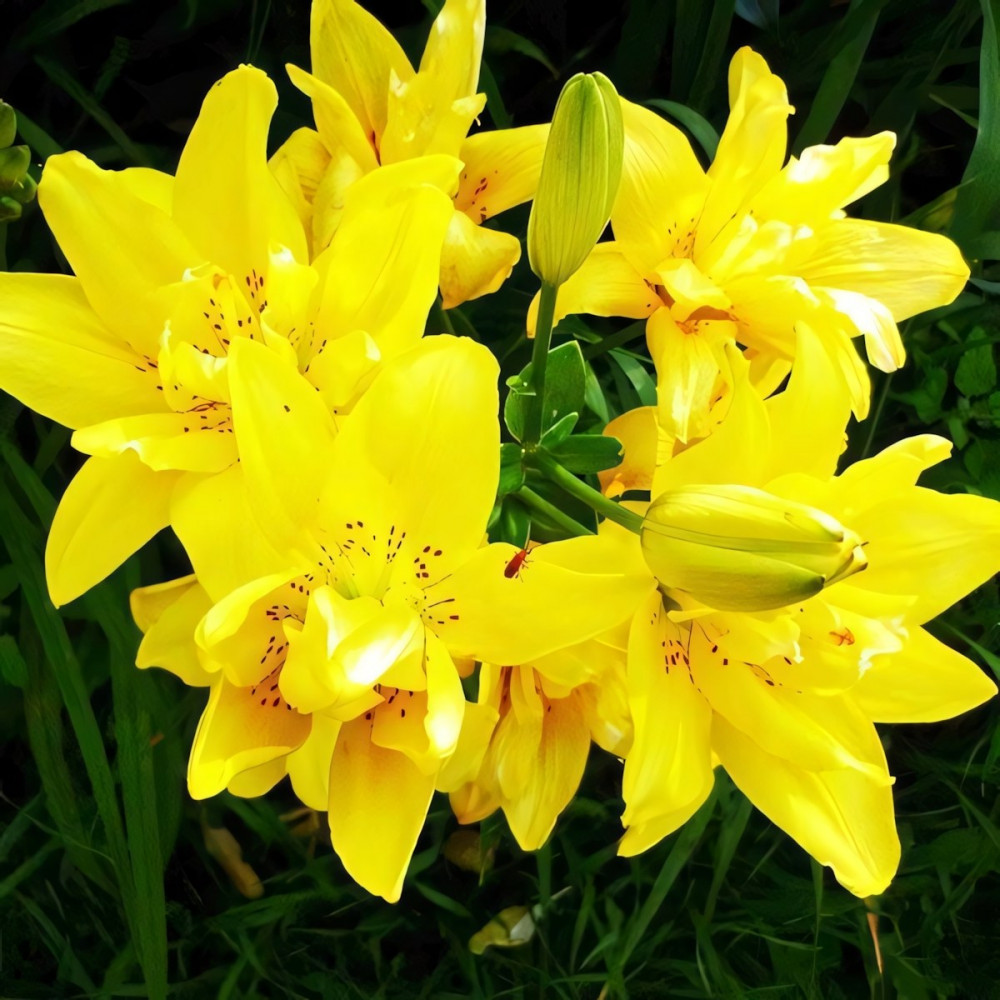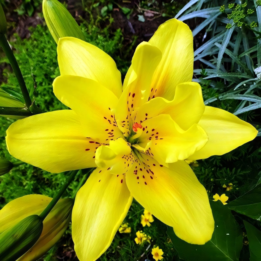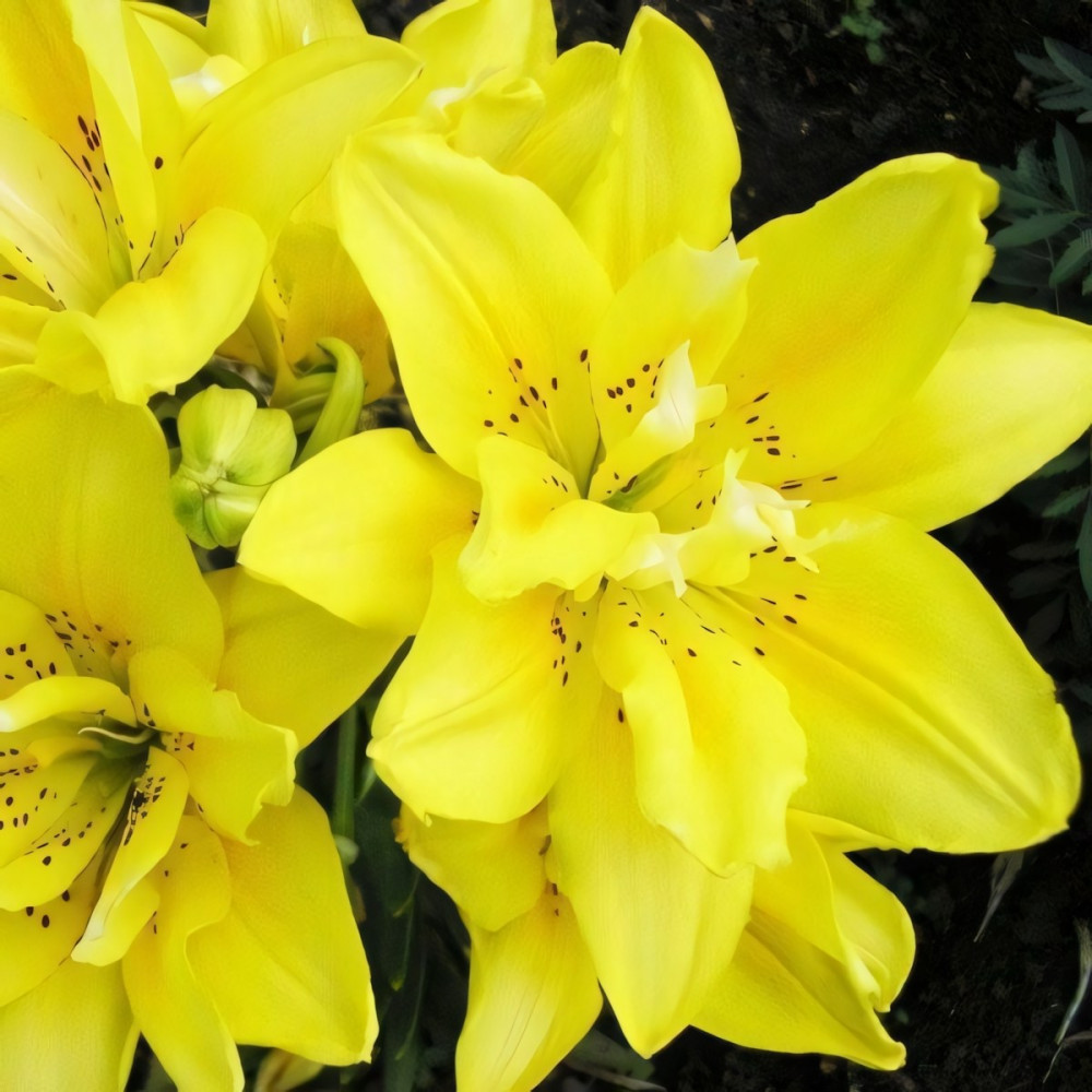 Новинка среди махровых азиатских гибридов. Цветки яркие, насыщенно-желтые, без запаха. Лепестки имеют легкое гофрирование по краям, центр цветка покрыт крапом винного цвета. Стебель крепкий, прямостоячий с многочисленной крупной темно-зеленой листвой. Sundew (Сандью) великолепно вписывается в любую цветочную композицию. Используется в групповых посадках, миксбордерах, клумбах, на срезку.