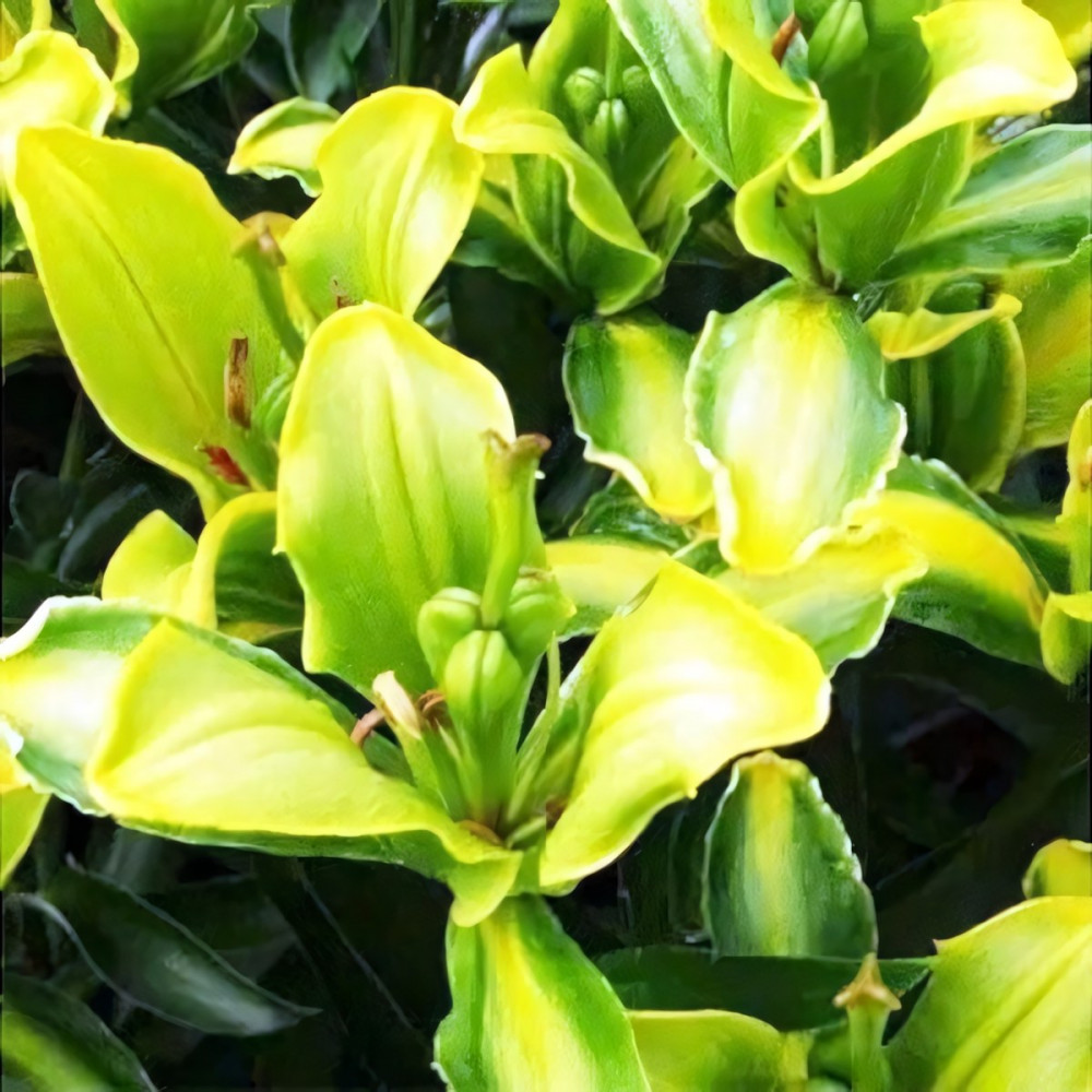 "Желтый Попугай" - такое имя очень подходит этому экзотичному сорту лилии. Это новинка сезона 2021! Совершенно новый тип лилии. Эксклюзивные, экстраординарные - это несколько подходящих ключевых слов. Yellow Parrot (Йеллоу Пэррот) выглядит настолько экзотично, что не сразу понятно, что это лилия, а не какое-то тропическое растение. Необычна как форма цветка с загнутыми вовнутрь "попугайными" лепестками, так и его окраска с необычными желто-зелеными переходами оттенков, сочетающиеся с зелеными тычинками. Цветение сопровождается ярким, сладковатым ароматом.