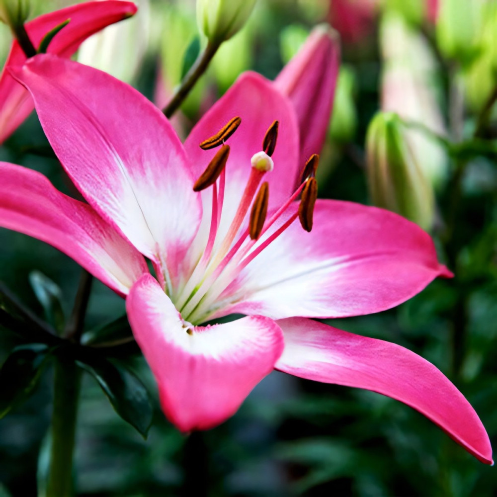 Уход за лилией: Пышных бутонов у лилий можно добиться, соблюдая обычные правила ухода: в первый год лилиям не нужна весенняя подкормка, удобрения вносятся разово за сезон, после цветения. Но это лишь в том случае, если перед посадкой вносилось удобрение. Перед началом цветения высокорослые сорта рекомендуется подвязать. После цветения засохшие бутоны удаляют.