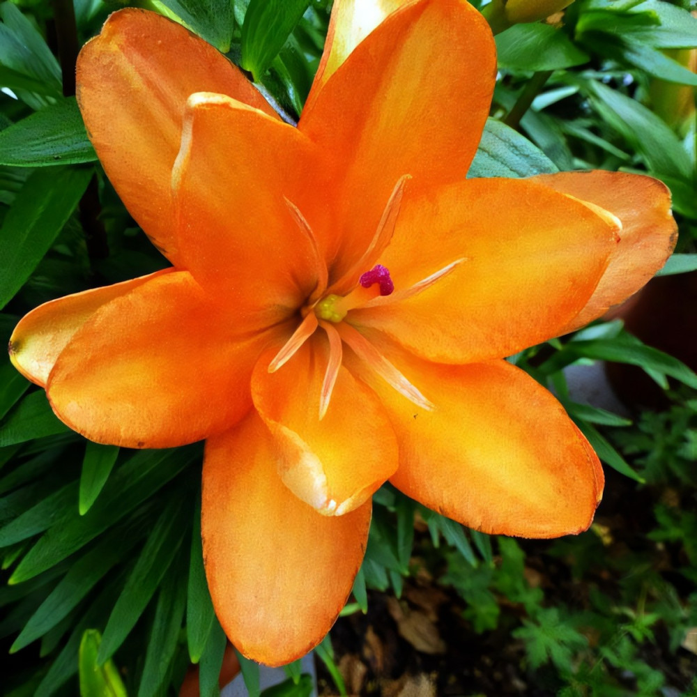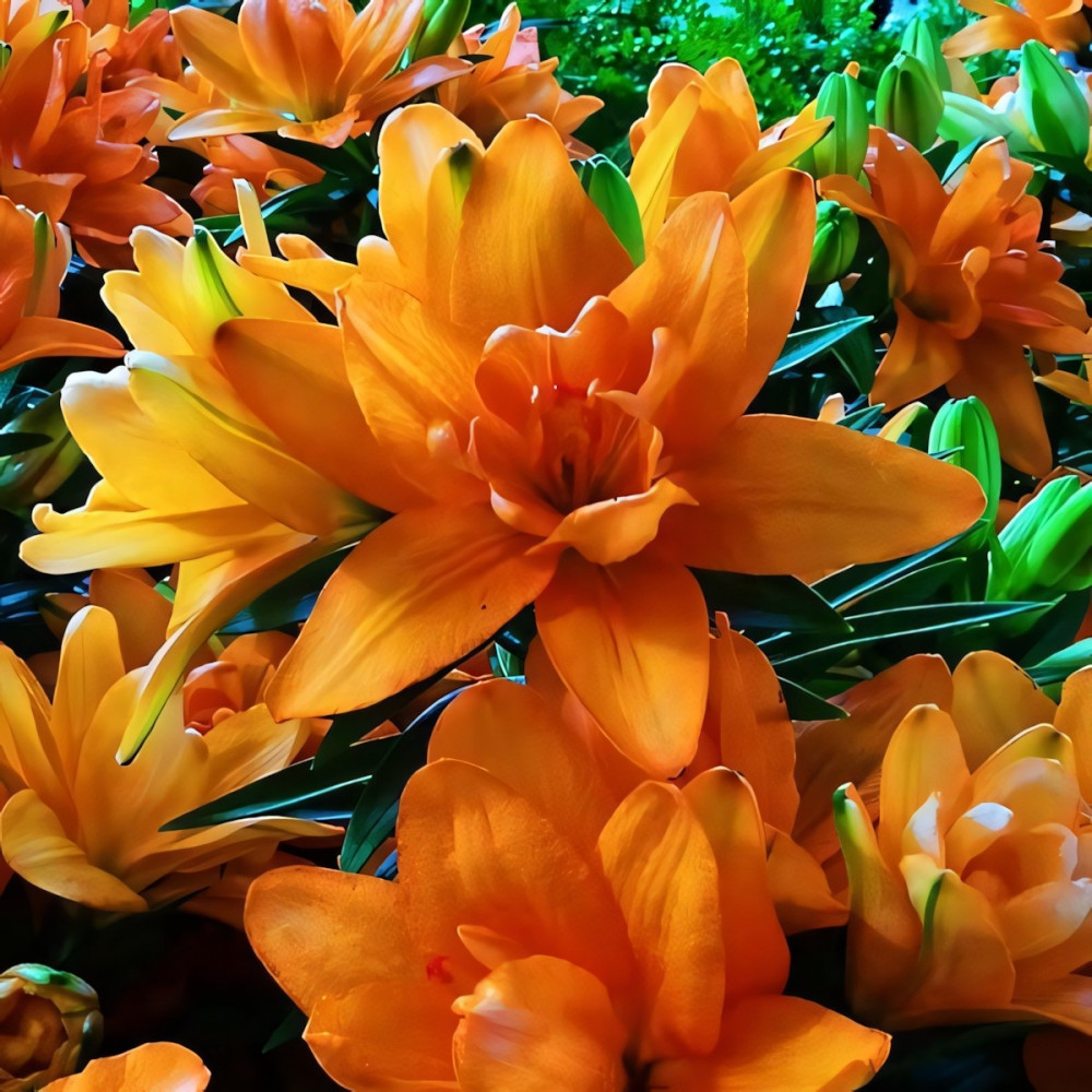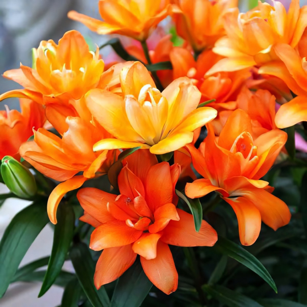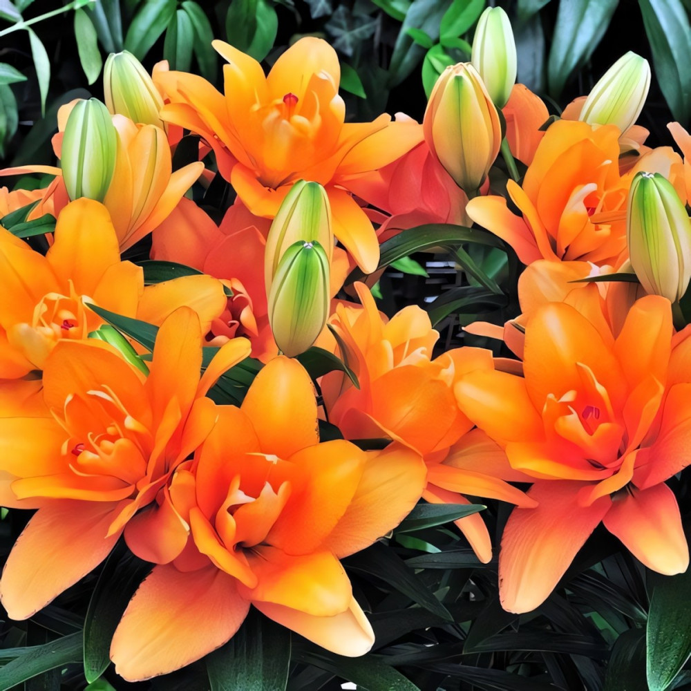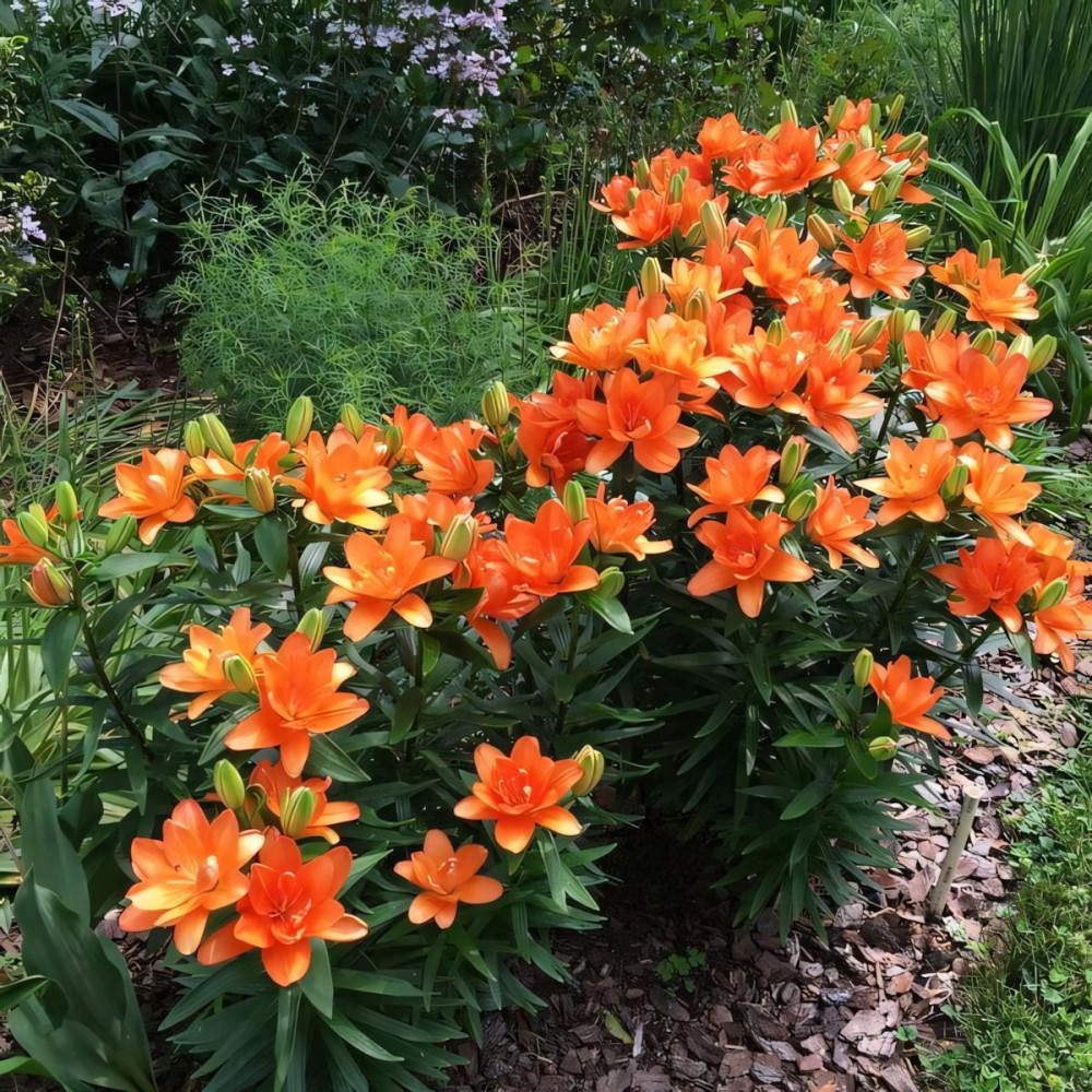 МАХРОВЫЙ! Ярко - оранжевый гибрид лилии из серии Тайни. Ароматный цветок - редкое качество для азиатских гибридов лилий. Форма соцветия: цветы чашевидные с широкими лепестками, направленные вверх. Цветы махровые стерильные, лишены пыльников, тычинки модифицированы в дополнительные лепестки. Идеально подходит для выращивания в контейнерах, горшках, уличных вазонах.