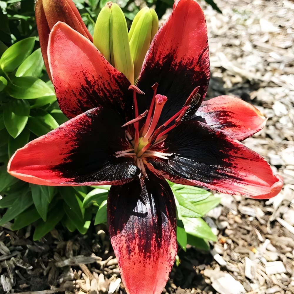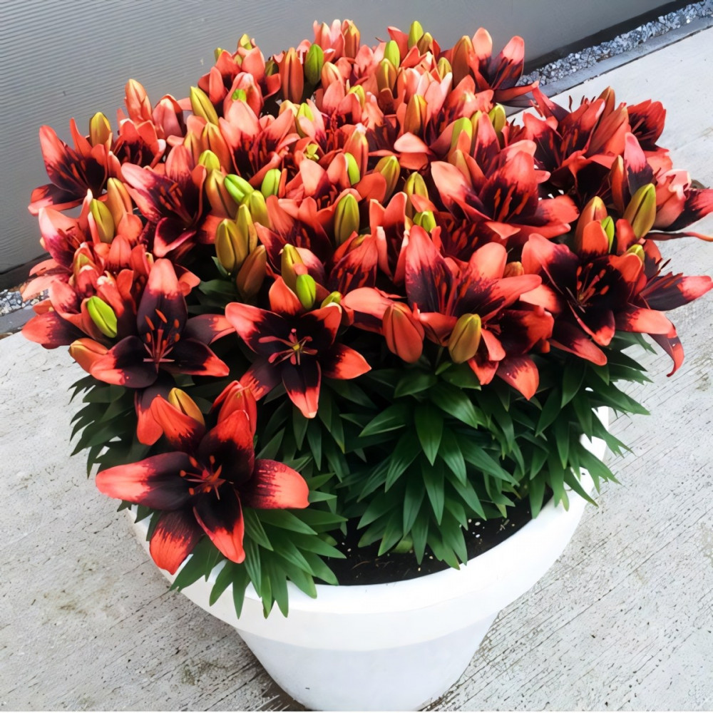 Низкорослый сорт азиатских лилий. Имеет насыщенно коралловый окрас цветков с черным крапом, усиливающимся к середине цветка. Имеет слабый сладковатый аромат.