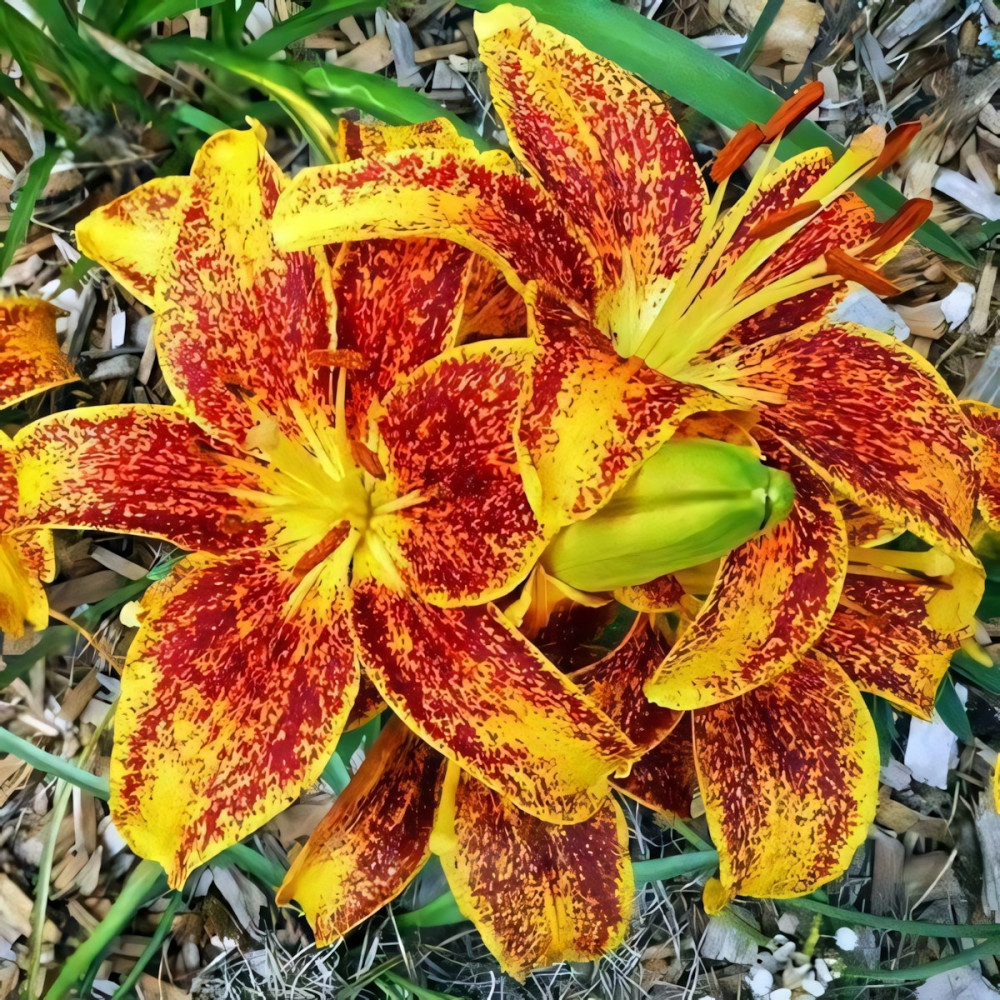 Подготовка к зиме: Нужно укрывать лилии на зиму или нет – зависит от сорта и климатических условий. В случае с азиатскими сортами осенью достаточно просто замульчировать гряды смесью торфа и опилок или хвои, предварительно удобрив посадки перепревшим компостом или перегноем. В случае, если лилии не отличаются морозостойкостью или выращиваются в суровых погодных условиях, процесс выкапывания луковиц производится поэтапно: сначала подрезаются стебли луковиц, затем нужно выкопать луковицы из заранее увлажненной почвы, весь грунт с них нужно аккуратно стряхнуть. Следует внимательно осмотреть луковицы – не подгнили ли корни, нет ли высохших чешуек, затем их промывают под проточной холодной водой, чистые луковицы помещают на полчаса в дезинфицирующий раствор (в марганцовку или «Карбофос», «Максим»), затем луковички выкладывают для просушивания. И только после проведения всех вышеописанных процедур, луковицы лилий готовы для закладывания на хранение.