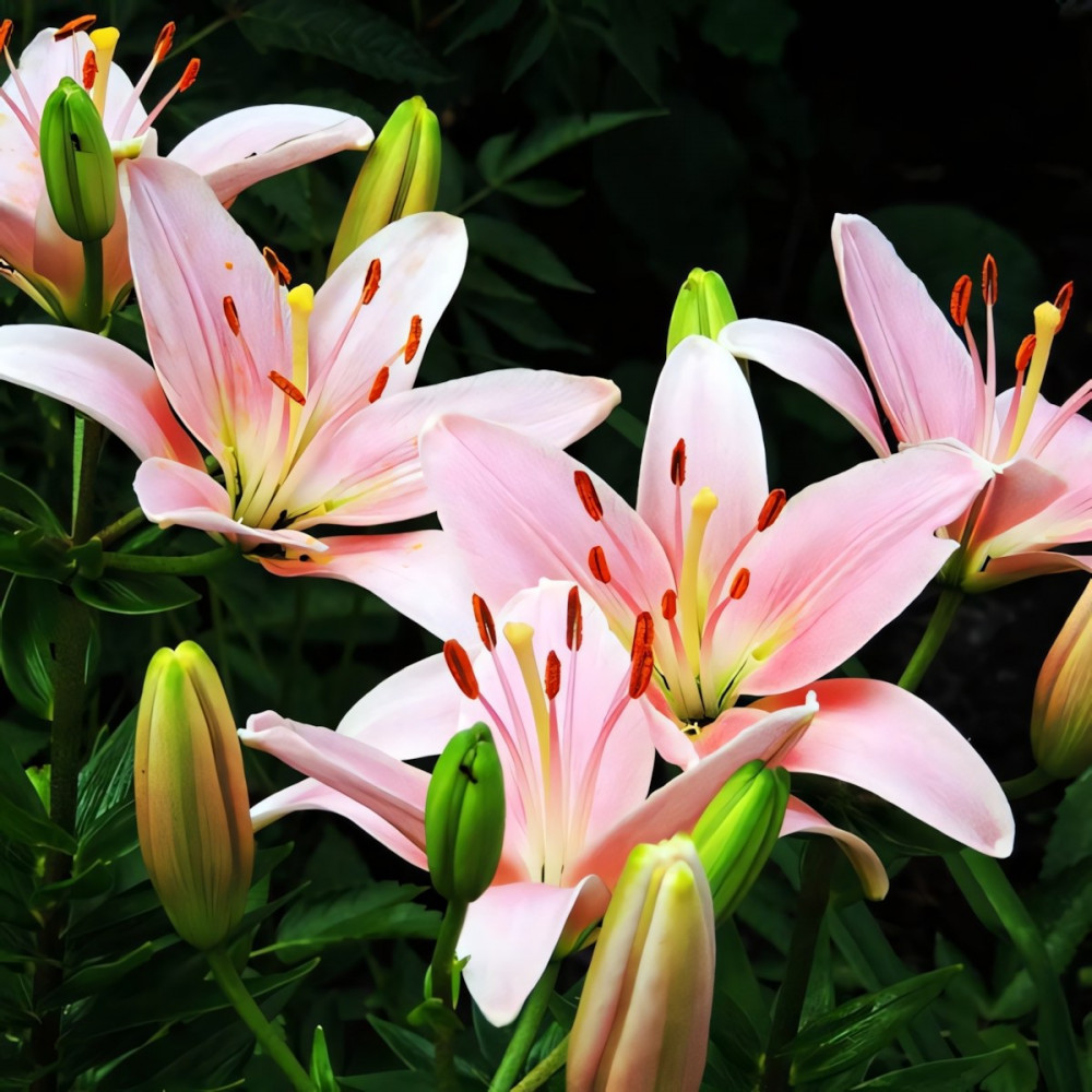 Уход за лилией: Пышных бутонов у лилий можно добиться, соблюдая обычные правила ухода: в первый год лилиям не нужна весенняя подкормка, удобрения вносятся разово за сезон, после цветения. Но это лишь в том случае, если перед посадкой вносилось удобрение. Перед началом цветения высокорослые сорта рекомендуется подвязать. После цветения засохшие бутоны удаляют.