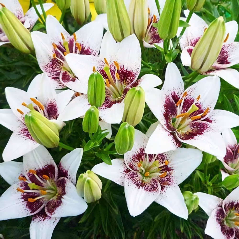 | Период цветенияиюль | Стандарт поставкиЛуковица в пакете | Цвет цветкаБелый, бордовый |