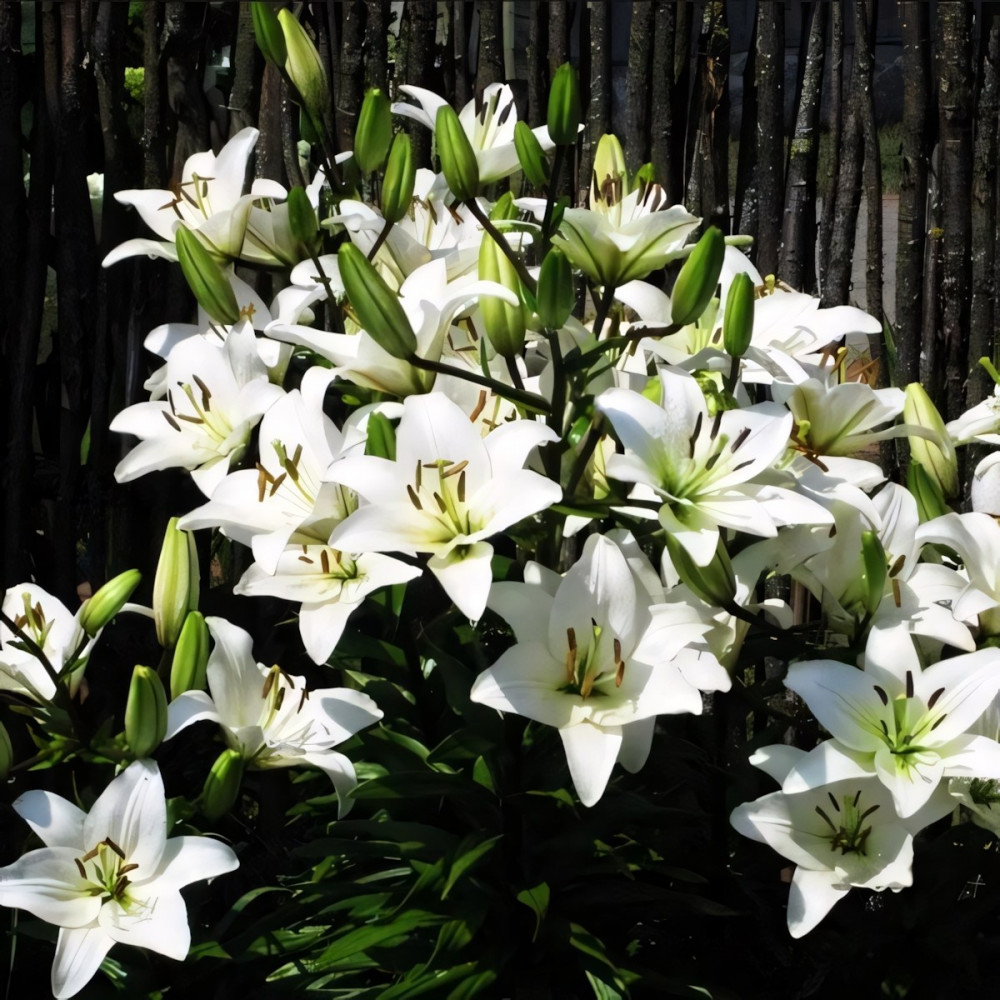 Уход за лилией: Пышных бутонов у лилий можно добиться, соблюдая обычные правила ухода: в первый год лилиям не нужна весенняя подкормка, удобрения вносятся разово за сезон, после цветения. Но это лишь в том случае, если перед посадкой вносилось удобрение. Перед началом цветения высокорослые сорта рекомендуется подвязать. После цветения засохшие бутоны удаляют.