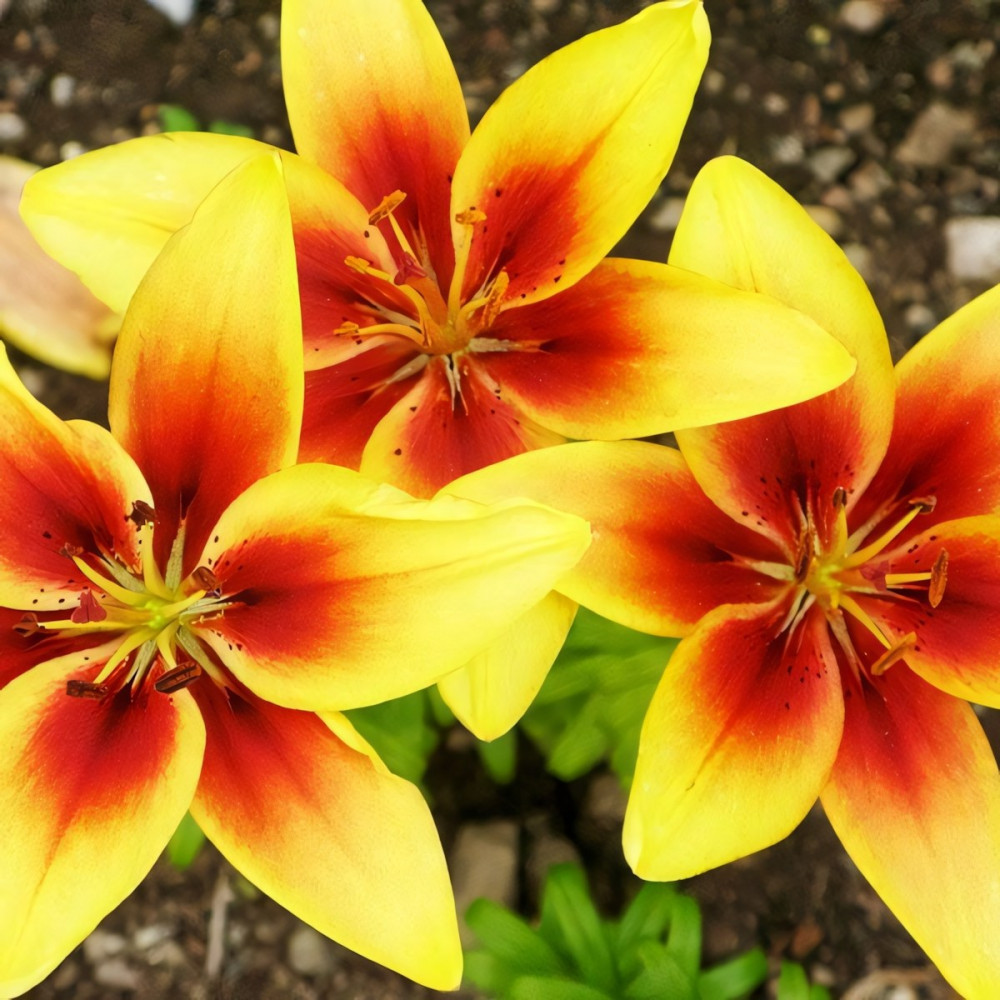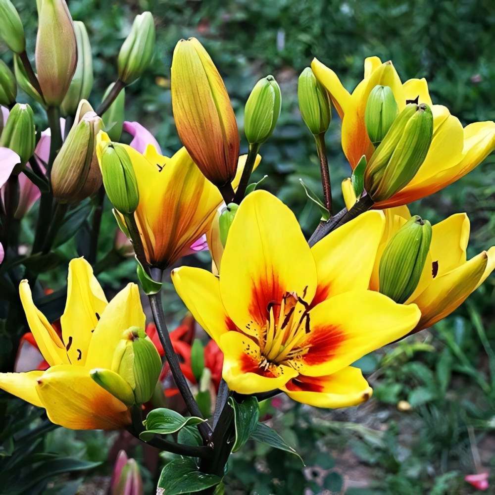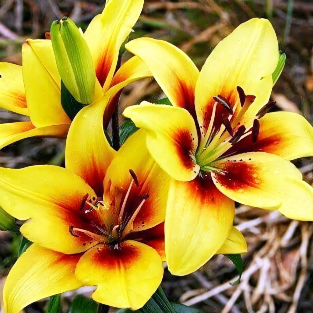 | Стандарт поставкиЛуковица в торфе | Цвет цветкажелтый, в центре темно-красный с крапом |