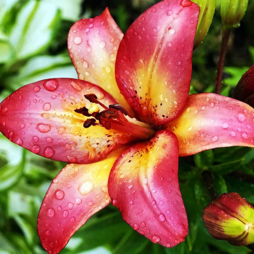 Уход за лилией: Пышных бутонов у лилий можно добиться, соблюдая обычные правила ухода: в первый год лилиям не нужна весенняя подкормка, удобрения вносятся разово за сезон, после цветения. Но это лишь в том случае, если перед посадкой вносилось удобрение. Перед началом цветения высокорослые сорта рекомендуется подвязать. После цветения засохшие бутоны удаляют. Полив умеренный: лучше не долить, чем перелить. Если цветок начал чахнуть и имеются подозрения на перелив – смешайте по столовой ложке речного песка и древесной золы, высыпьте под цветок и не поливайте ближайшую неделю. Полив лилии важно проводить под корень, старайтесь исключить попадание воды на листья, это провоцирует ожоги на солнце и распространение грибковых заболеваний.
