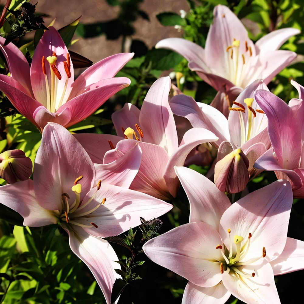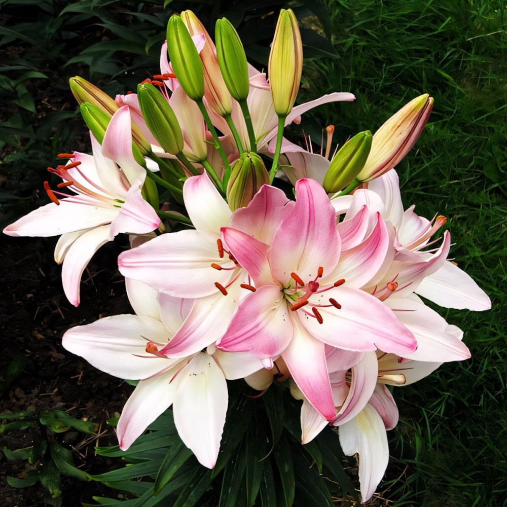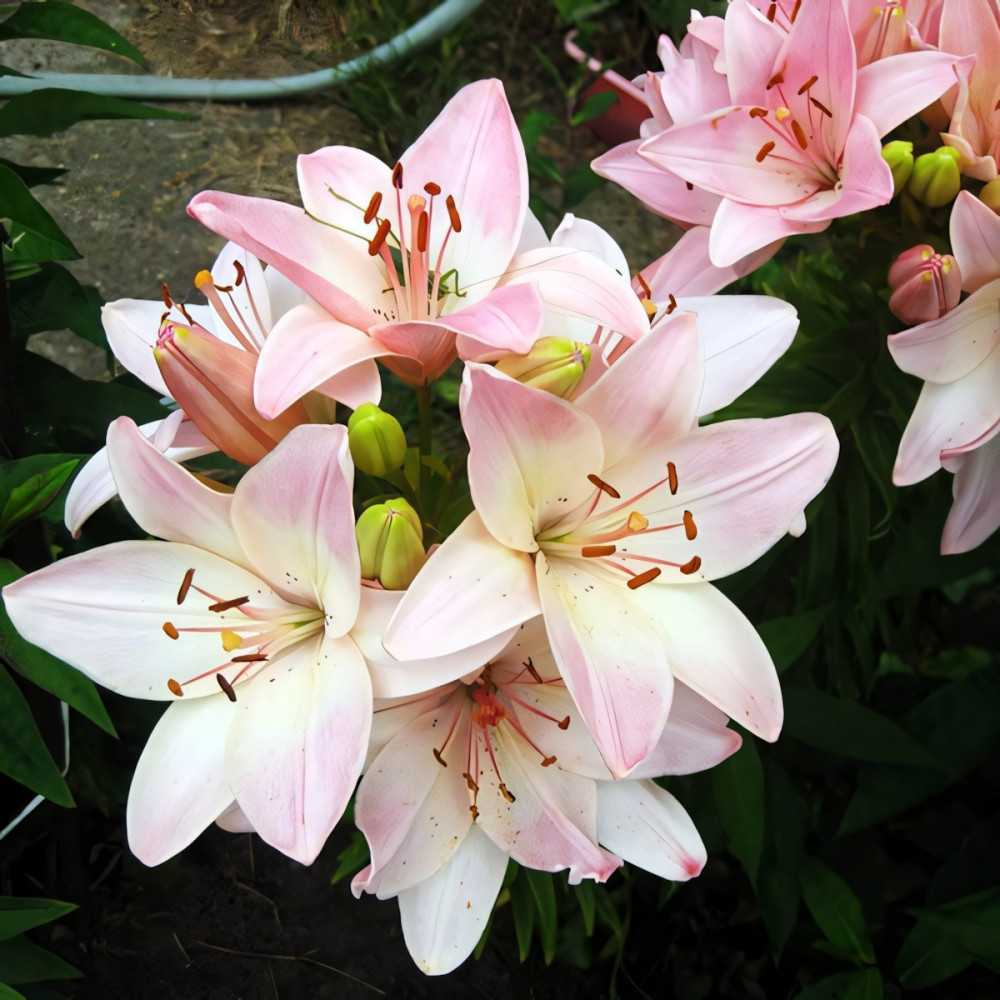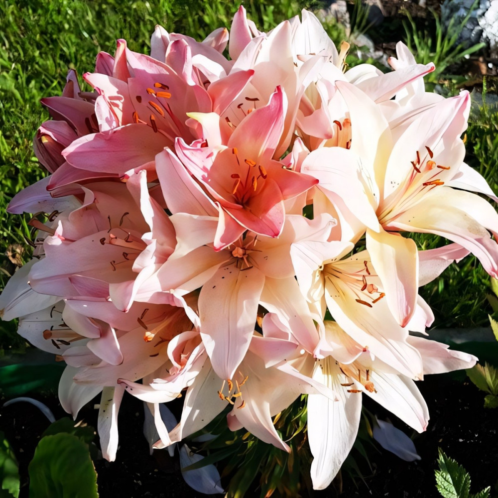 Азиатский гибрид бледно-розового цвета. Лилии этого сорта склонны к срастанию стеблей, благодаря чему получается поразительный эффект - одновременное цветение до 100 цветков на одном стебле, целый букет!