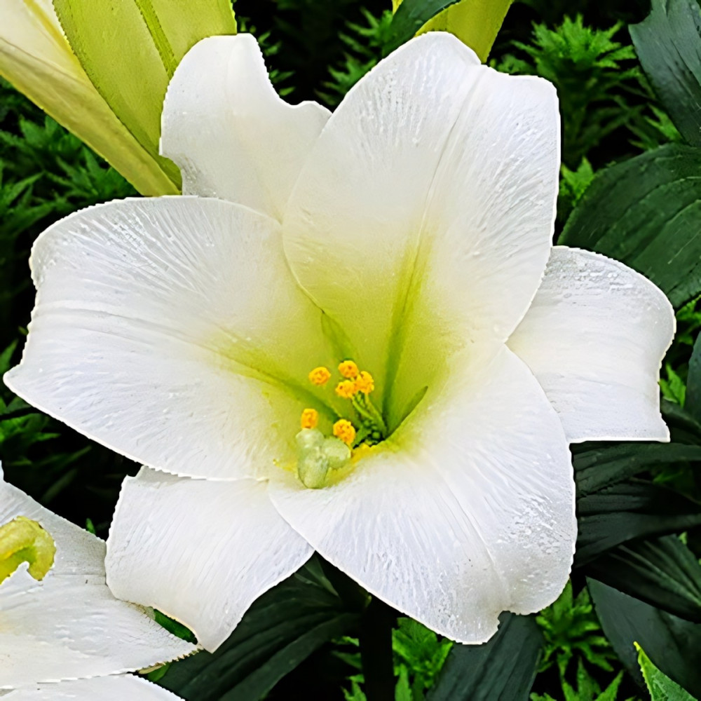 Лилия Carpino (Карпино) - относится к длинноцветковым гибридам. Ее цветки вытянутой формы, имеют удлиненную чашу, с белыми изогнутыми лепестками. Растение высокое, стебель крупный и крепкий. Густо покрыт темно-зелеными листьями. Подходит для выращивания под срез, имеет не сильный сладковатый аромат.