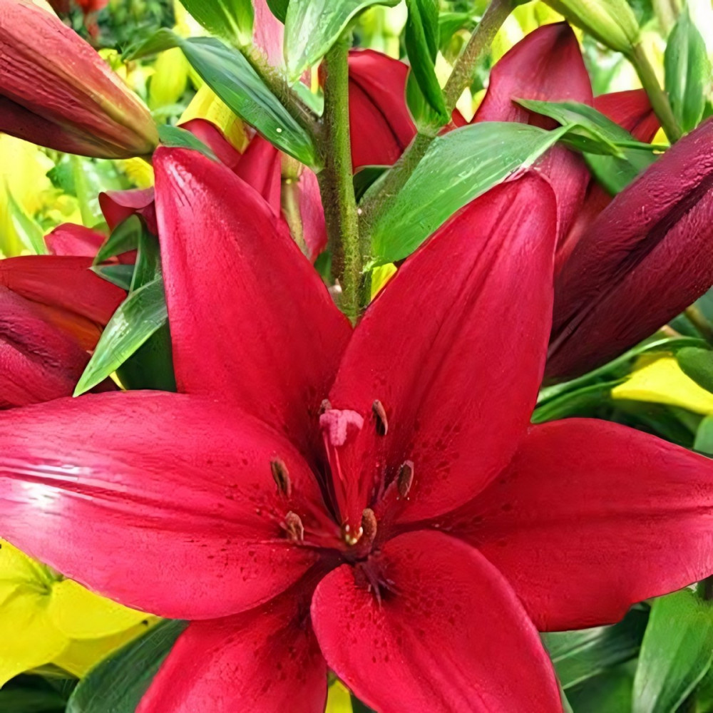 ЛА-гибрид. Цветок ярко-рубинового цвета, глянцевая, абсолютно зимостойка. Высота - 110 см.