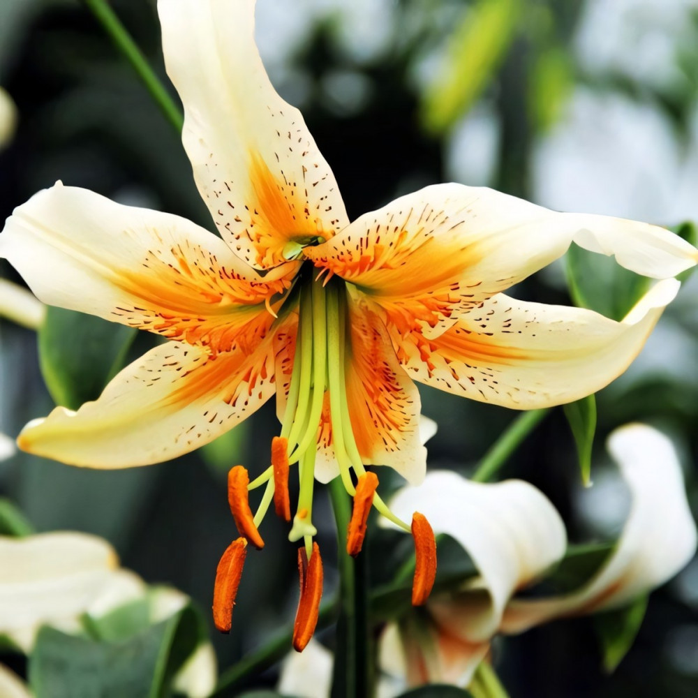 | Период цветенияиюль-август | Стандарт поставкиЛуковица в торфе | Цвет цветкабелый, с насыщенно-абрикосовым центром |