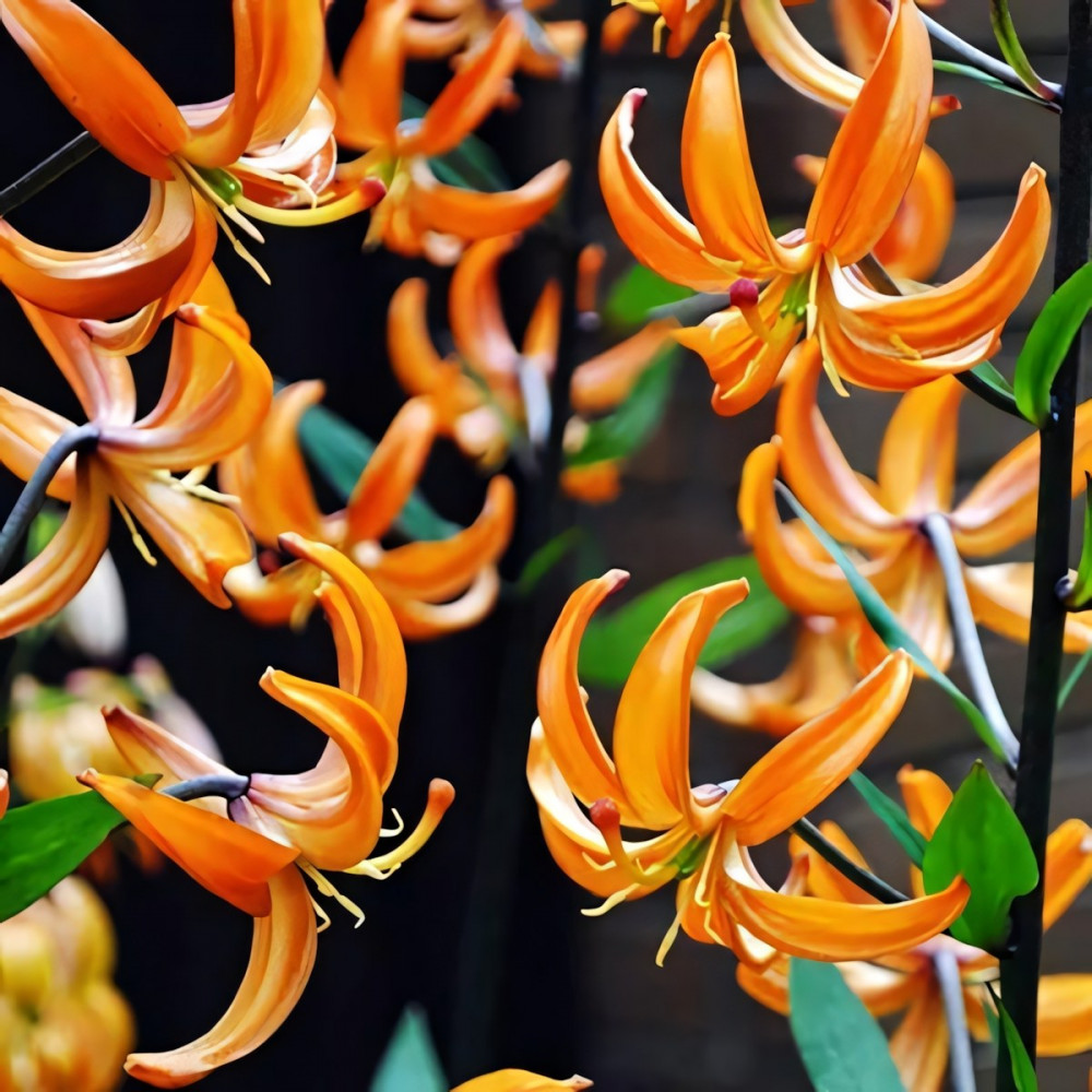 Лилия Orange Marmelade (Оранж Мармелад) - относится к особенной группе Мартагонов. Отличается очень высокой интенсивностью роста, на одном цветоносе в течение нескольких лет образуются до 40 цветков. Поэтому через 2-3 года после посадки цветы превратятся в настоящие лиловые деревья. Цветы чалмовидной формы, ярко-оранжевого окраса. Цвести сорт начинает в середине июля.