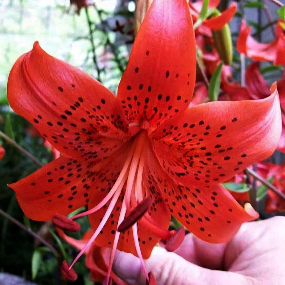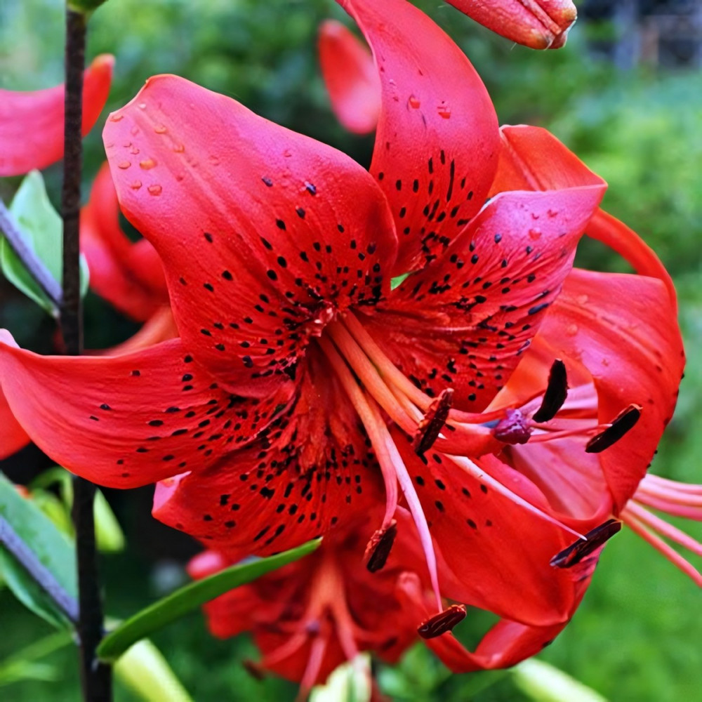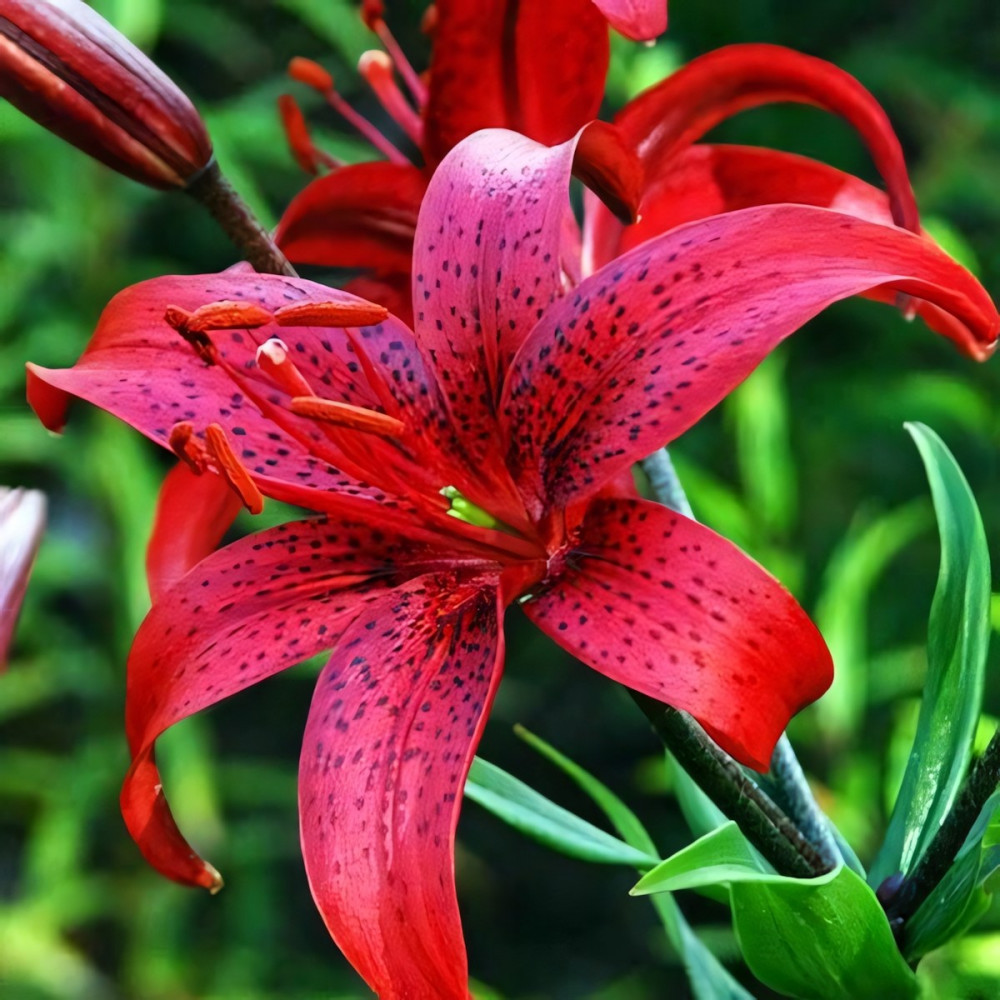 Лилия Red Life (Рэд Лайф) – это удивительной красоты растение с соцветиями насыщенного красного цвета. Серединка каждого цветка усеяна озорными точками. Еле уловимый аромат покоряет своей элегантностью и легкостью. Растение не капризное, но любит хорошо освещенные места. Высота растения 100-140 см. Зацветает в июле. Этот сорт лилии будет прекрасен в качестве элемента живой изгороди и создаст сказочную атмосферу вашему саду. Массивные, яркие и благоухающие цветы не только декоративно выглядят, но и помогают друг другу, оттеняя красоту бутонов.