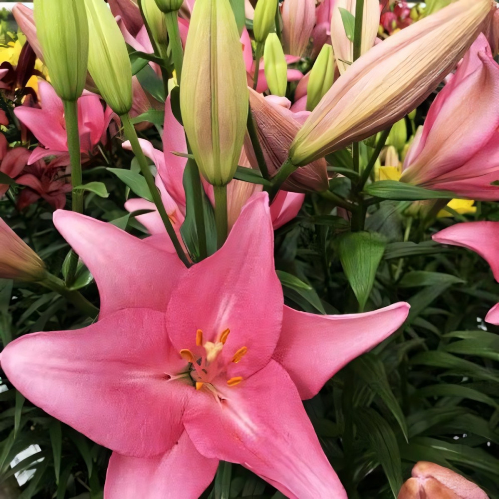 Еще один представитель ЛА-гибридов, которые были выведены путем скрещивания Лонгифлорум гибридов и Азиатских гибридов. От Лонгифлорум гибридов в наследство получили достаточно крупный цветок и восковидную фактуру лепестка, а от Азиатских гибридов – зимостойкость. Замечательно растут в разных климатических условиях обширной территории России. Потрясающий, перламутрово-розовый оттенок крупных цветов привлекает взгляд, а сочный зеленый цвет листьев прекрасно дополняет и оттеняет их на прочном устойчивом стебле. Высота растения до 120 см. Лилия Jomi (Джоми) любит солнечную сторону, безветренные места и слабокислую PH почвы. Глубина посадки должна соотносится с высотой луковицы умноженной на 3. При подготовке к зиме стебли нужно срезать над самой землей, далее укрыть защитой-торфом и слоем листьев не менее 10 см толщиной; луковицы можно не выкапывать, а оставлять в земле. Ранней весной защитное укрытие снимают.