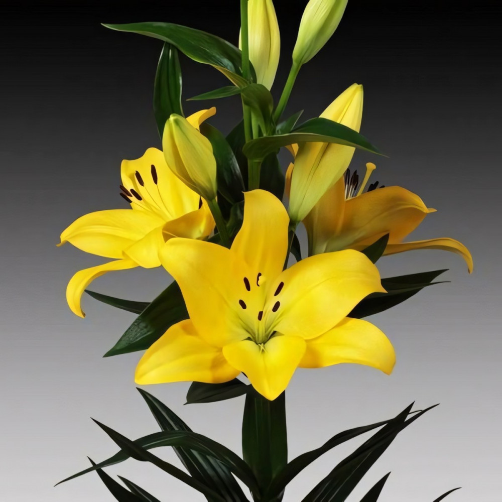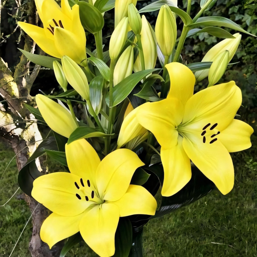 | Стандарт поставкиЛуковица в торфе | Цвет цветкаяркий, лимонно-желтый, коричневые тычинки |