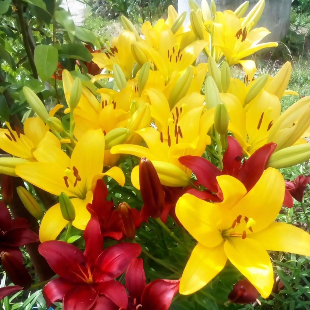 Уход за лилией: Пышных бутонов у лилий можно добиться, соблюдая обычные правила ухода: в первый год лилиям не нужна весенняя подкормка, удобрения вносятся разово за сезон, после цветения. Но это лишь в том случае, если перед посадкой вносилось удобрение. Перед началом цветения высокорослые сорта рекомендуется подвязать. После цветения засохшие бутоны удаляют. Полив умеренный: лучше не долить, чем перелить. Если цветок начал чахнуть и имеются подозрения на перелив – смешайте по столовой ложке речного песка и древесной золы, высыпьте под цветок и не поливайте ближайшую неделю. Полив лилии важно проводить под корень, старайтесь исключить попадание воды на листья, это провоцирует ожоги на солнце и распространение грибковых заболеваний.