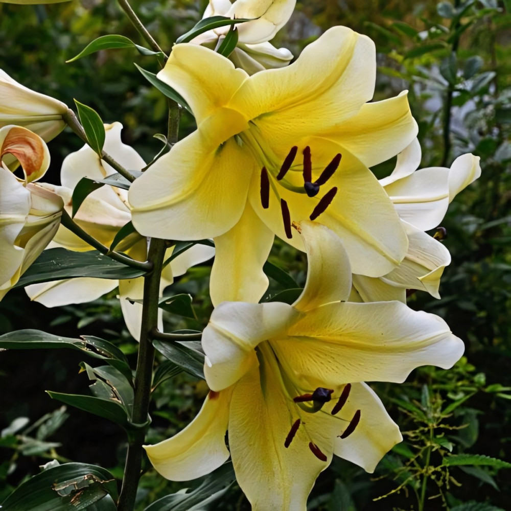 Эта лилия названа так за свои размеры – очень крупные цветки с лимонно-желтыми лепестками, покрытыми пыльцой. Поражают воображение не только красотой, но и пьянящим ароматом. Запах настолько силен, что от него может закружиться голова! Зацветает это чудо в середине июля и в первый год после посадки может не сильно впечатлить вас размерами, но уже на второй год в саду появятся бутоны, которые, раскрыв лепестки, превратятся в экзотических «бабочек»!