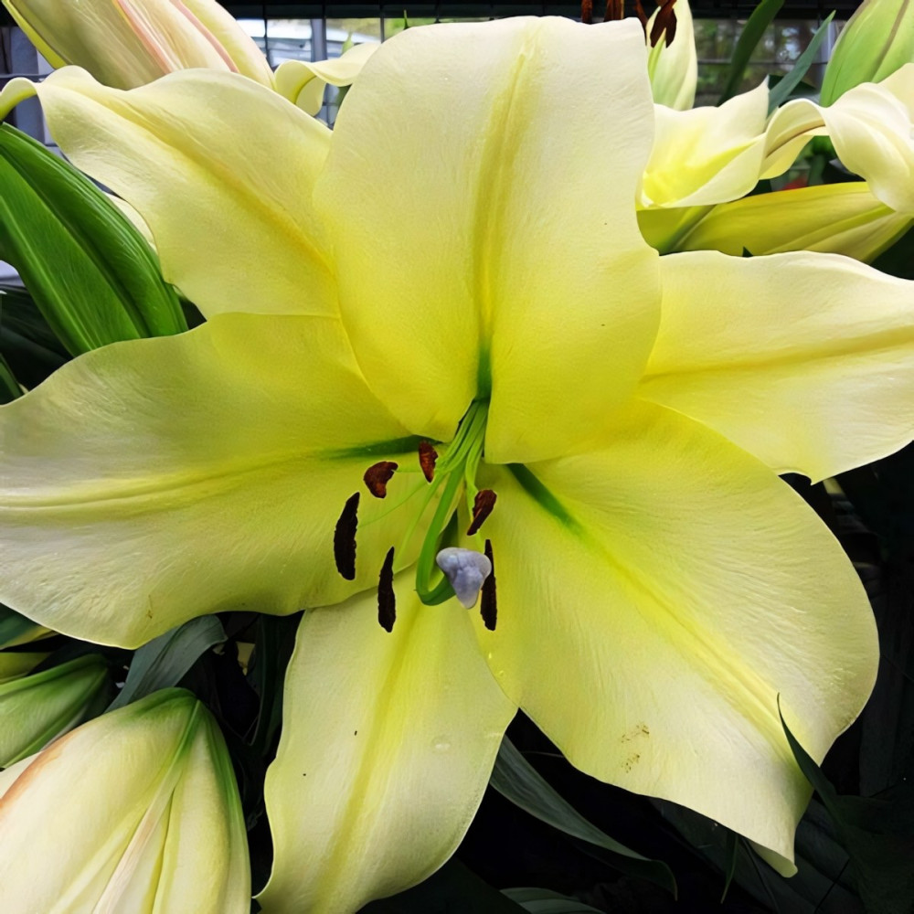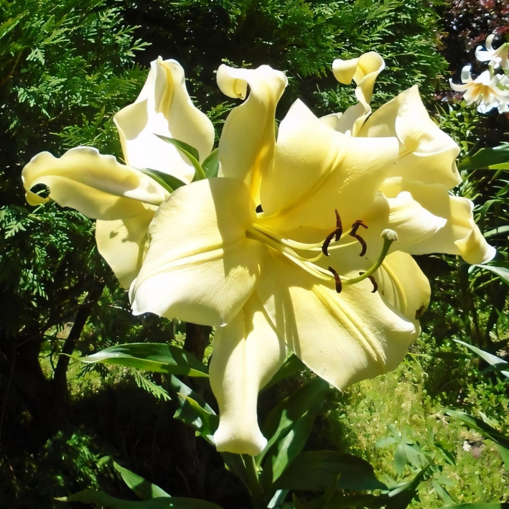 | Период цветенияиюль-август | Стандарт поставкиЛуковица в торфе | Цвет цветкаванильно-жёлтый с чёрными тычинками |