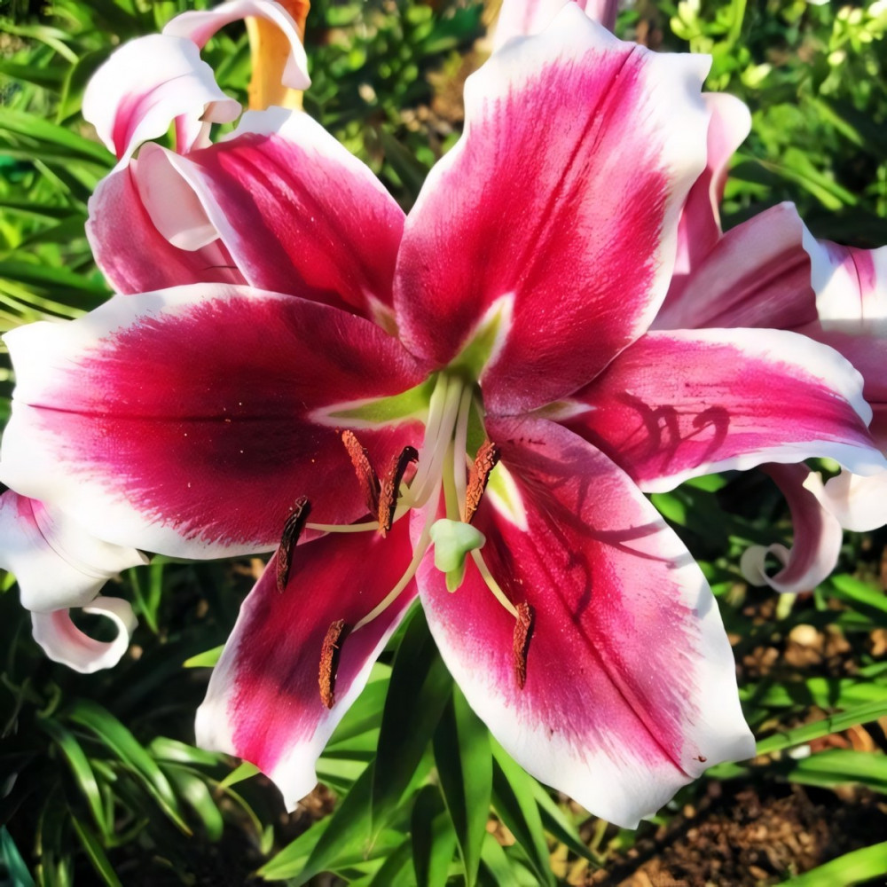 | Стандарт поставкиЛуковица в торфе | Цвет цветкамалиновый с белой каймой |
