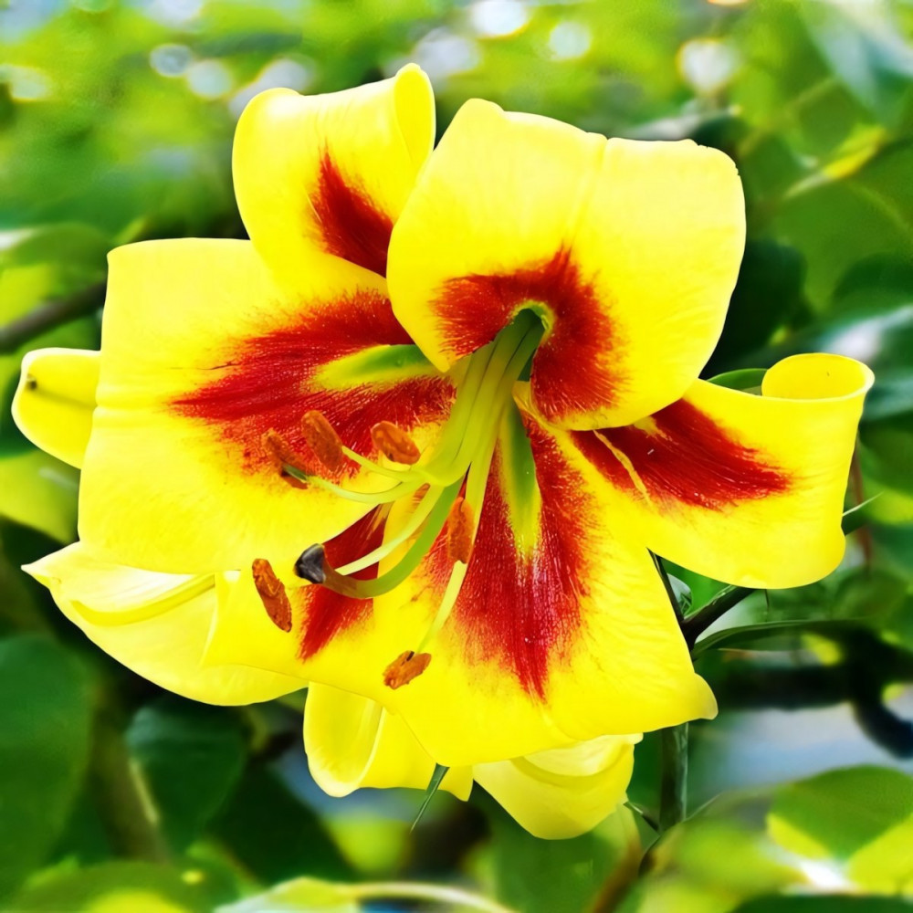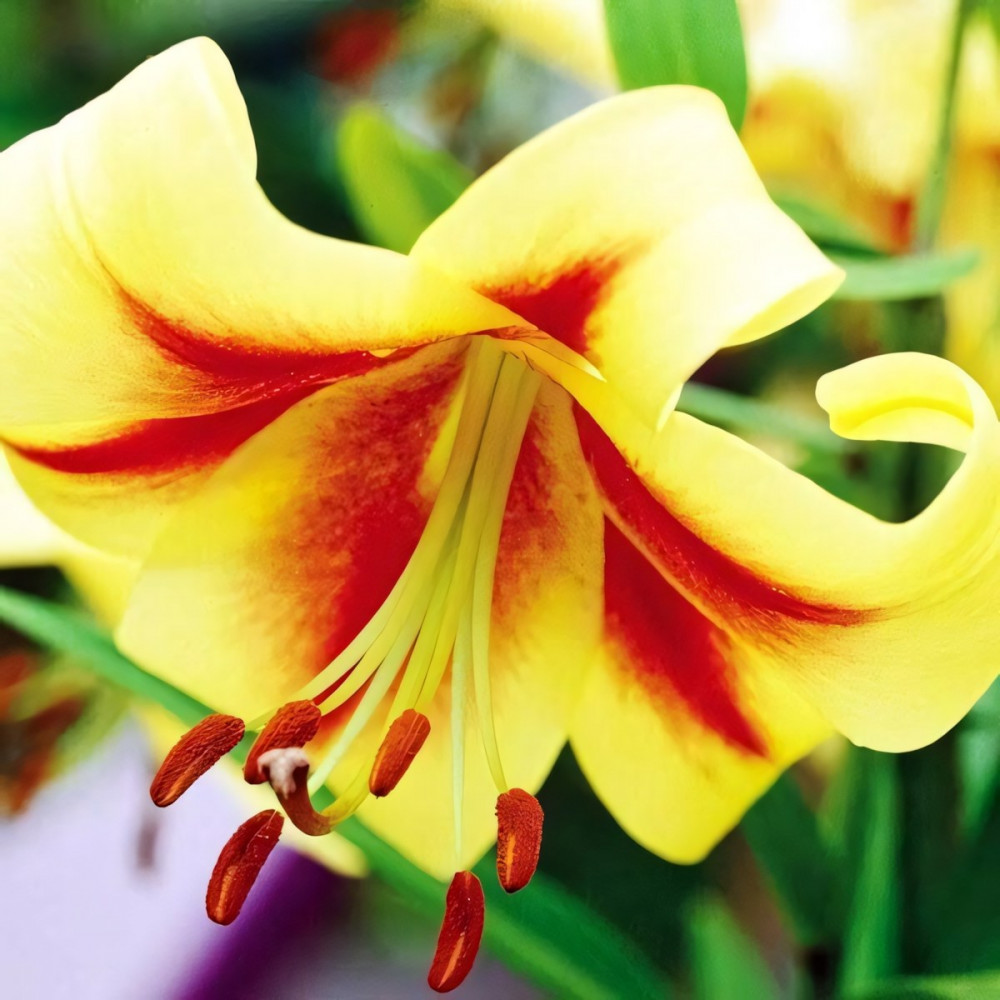 | Период цветенияиюль-август | Стандарт поставкиЛуковица в торфе | Цвет цветкакремово-жёлтый, рубиновый от центра |