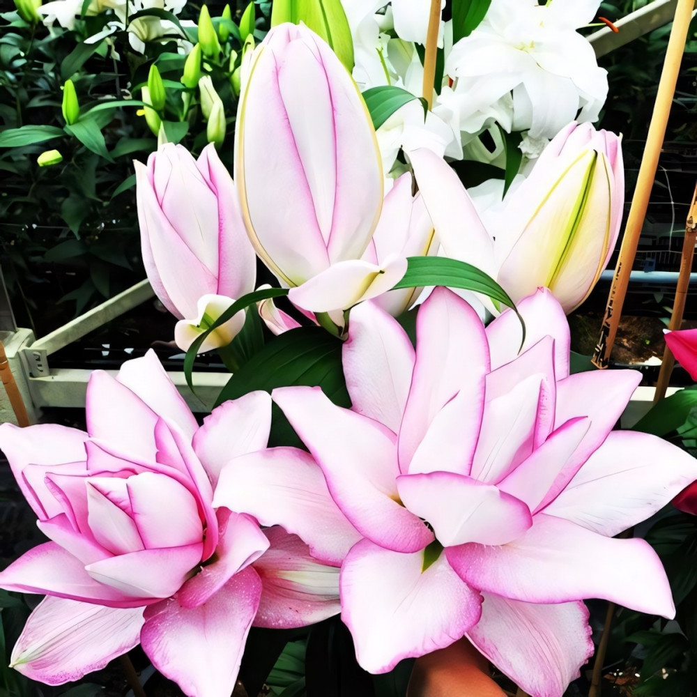 Первоклассный представитель восточных гибридов. Многочисленные белые лепестки бутона окантованы бледно-розовым тоном и не имеют пыльников, что считается преимуществом для флористов, поскольку букет не испачкает одежду пыльцой. Цветы достаточно высокие с крупными бутонами, которые отлично держат срез. Аромат подчеркивает эстетическую силу Аннушки и усиливается с заходом солнца.