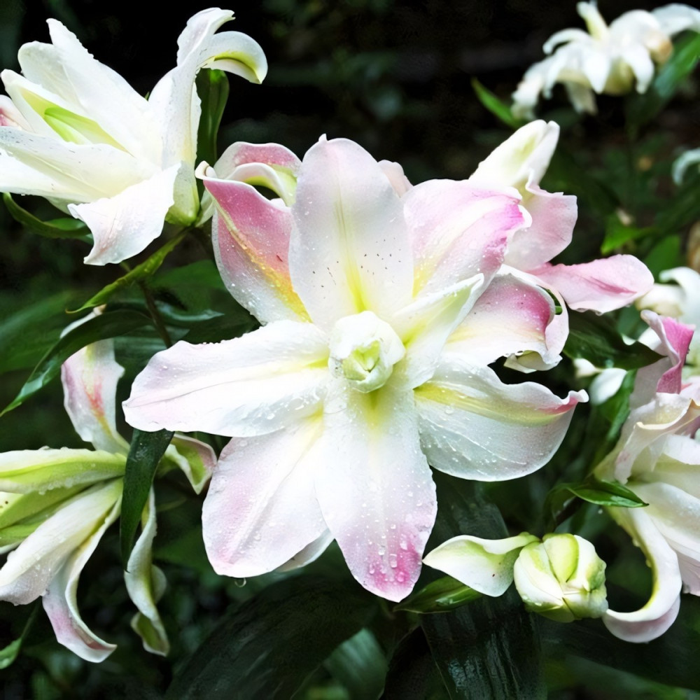 | Стандарт поставкиЛуковица в торфе | Цвет цветкабелый с нежно-розовым краем |