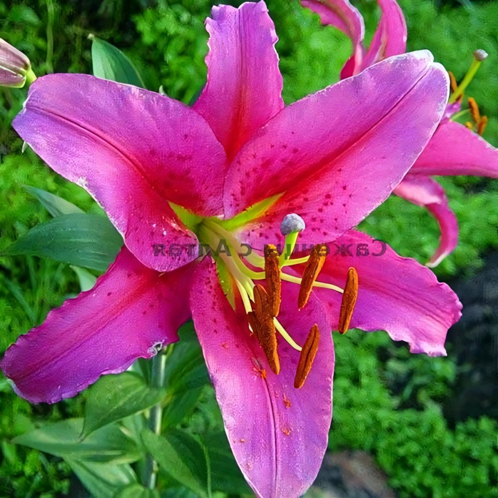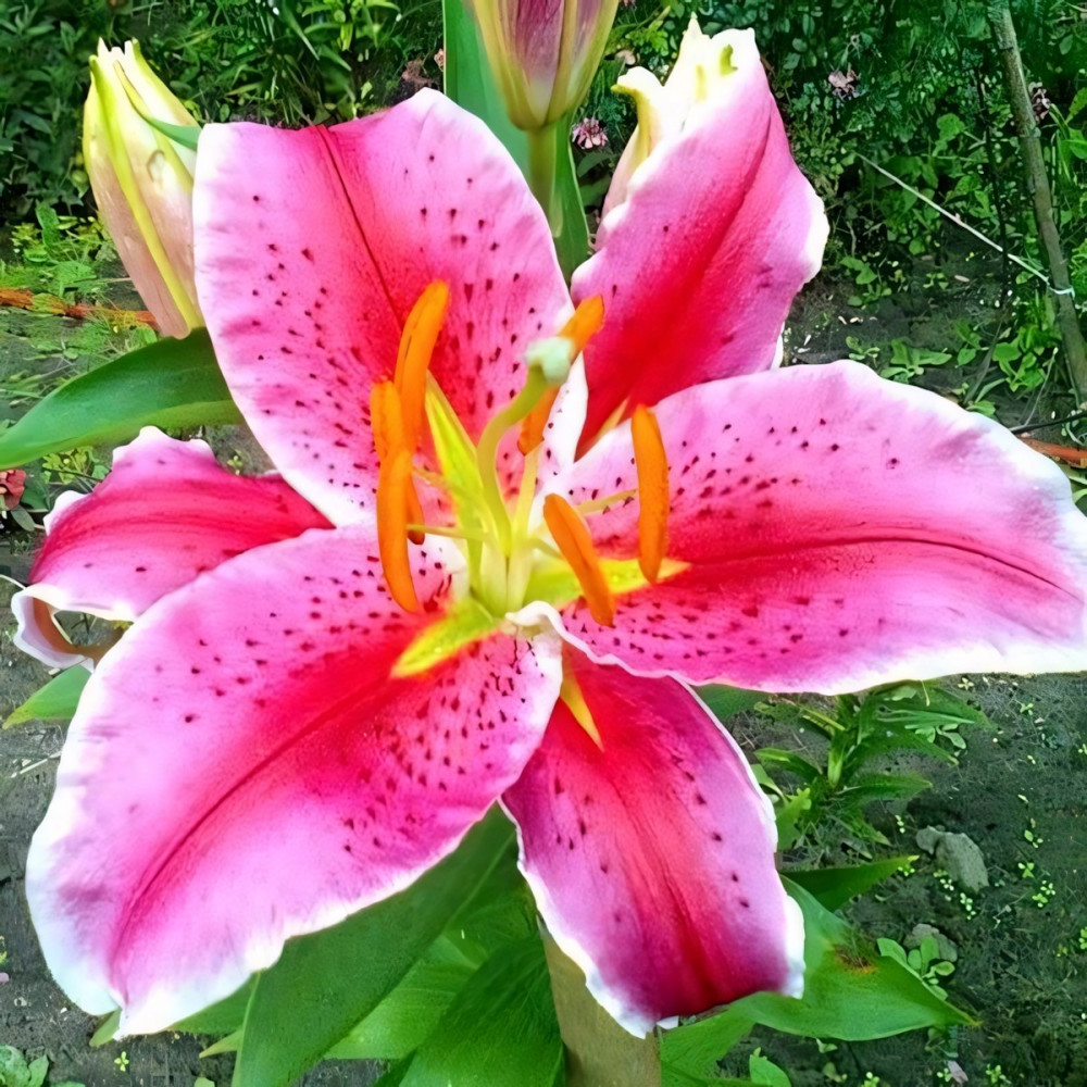 Лилия восточная Acapulco (Акапулько)-цветки крупные, диаметром 22 см, ярко-розовые с оранжевыми тычинками и крапом в центре с темно-розовыми лучами и легкой гофрой, чалмовидной формы. Растущие вверх. Лилия зацветает в конце июля-начале августа, имеет насыщенный аромат. Высота растения 120 см. Время посадки осенью - август-сентябрь или весной - в мае. Глубина посадки - 15-20 см. Расстояние между луковицами - 25-35 см. Расположение для посадки - открытые и затенённые места. Растение требует укрытия в первый год. Предпочитает нейтральную или слабокислую хорошо дренированную почву. Лилия Акапулько устойчивая к грибным заболеваниям, зимостойкая. Размножается луковичками - детками и луковичными чешуйками.