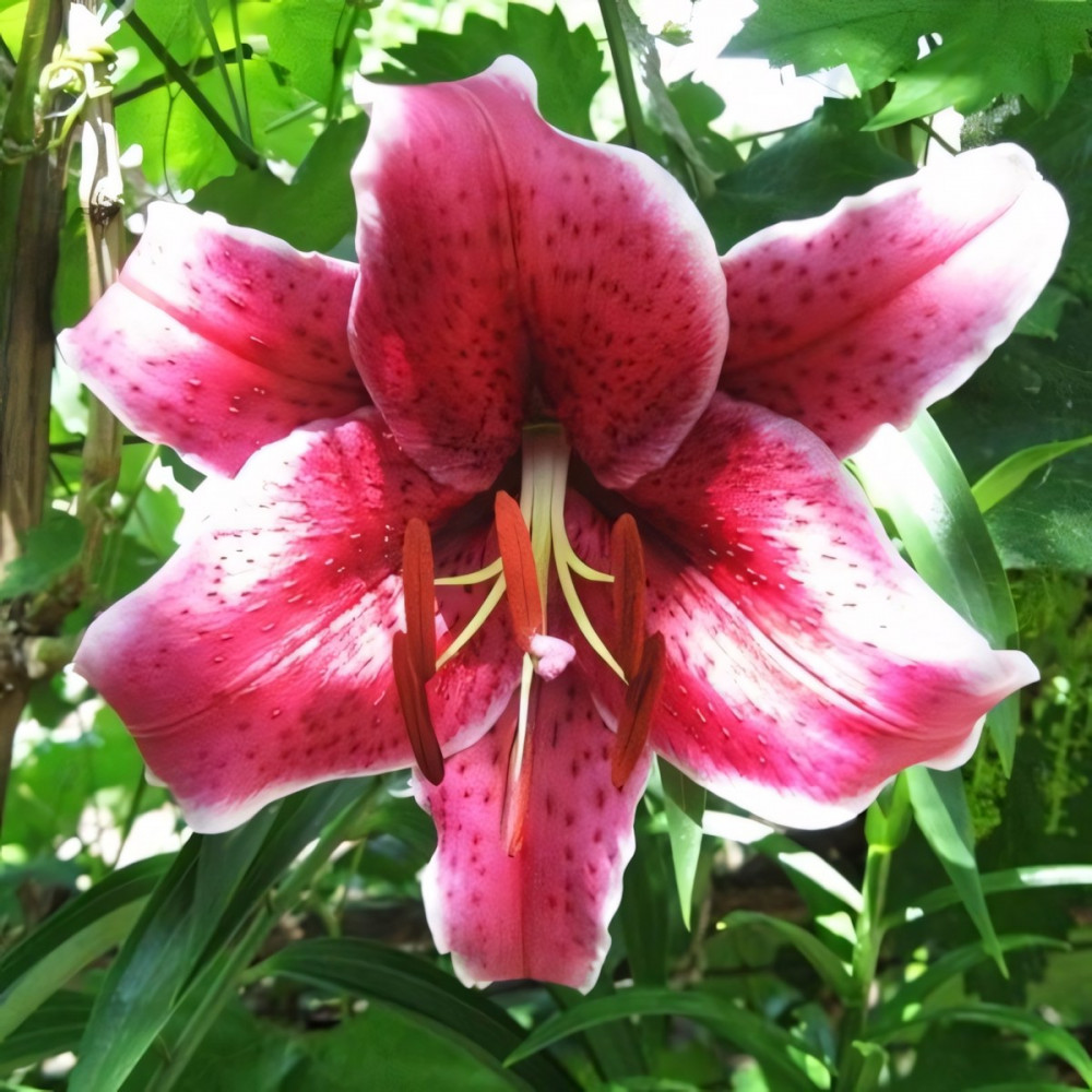 Прекрасно используется подавляющим числом садоводов во всем мире для дренированных богатых почв. Эта лилия украсит сад цветами во второй половине июня. Зелень матовая. Растение отличается необычной формой и окраской цветка. Очень крупные цветки имеют всего 6 лепестков. Форма лепестка широкая у основания с зауженными концами, края волнистые, слегка загнутые от центра. Цвет насыщенный яркий пурпурно-розовый с желтовато-белой окантовкой края. Весь лепесток покрыт темно-красными точками крапа и до середины мелкими выростами-сосочками совпадающими по цвету.
