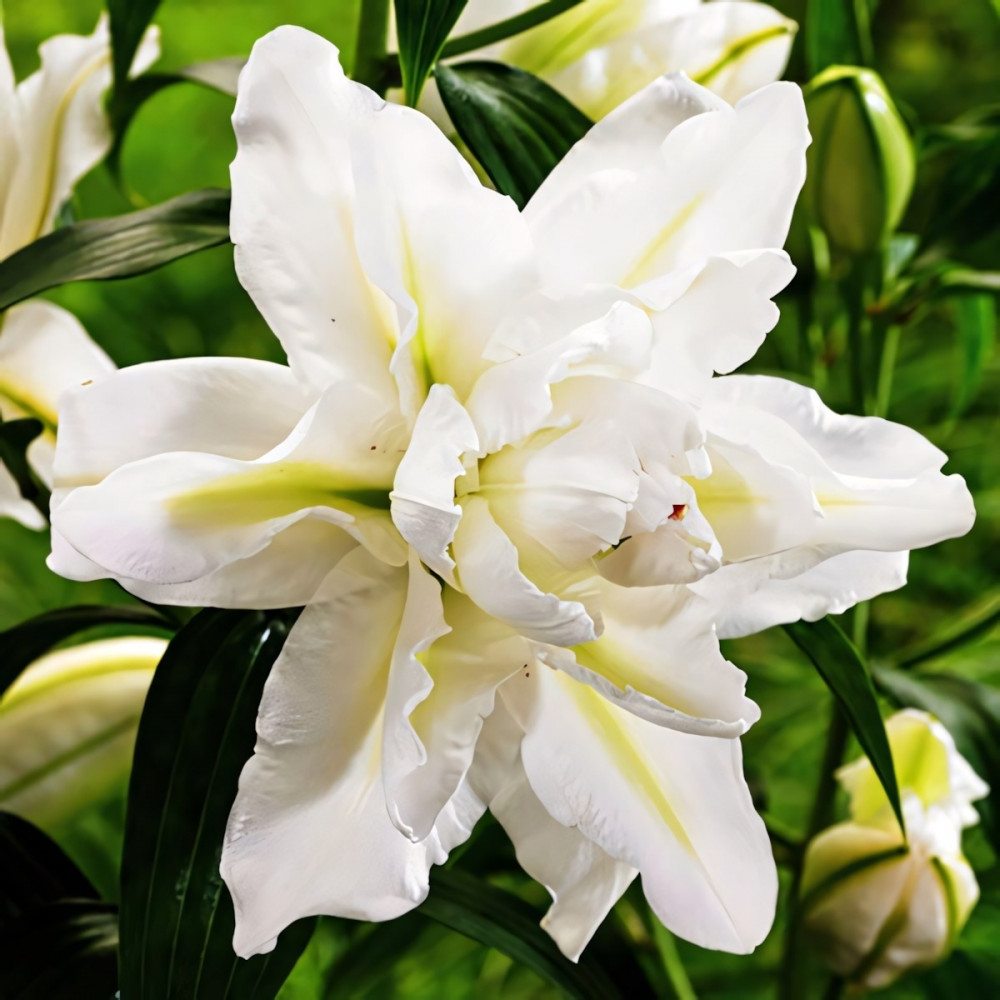 Лилия восточная Bowl of Beauty (Боул оф Бьюти) - имеет большие белоснежные цветки с тонкими нежными волнистыми по краю лепестками. Аромат сильный, приятный. Высота стеблей составляет в среднем 120 см.