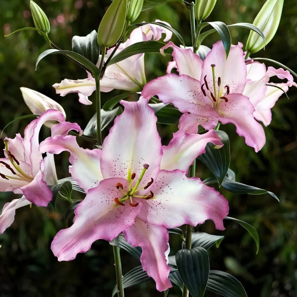 Лилия Brasilia (Бразилия) - является изящным восточным гибридом с крупными соцветиями, собирающимися из розово-малиновых бутонов. Сорт выведен голландскими селекционерами.