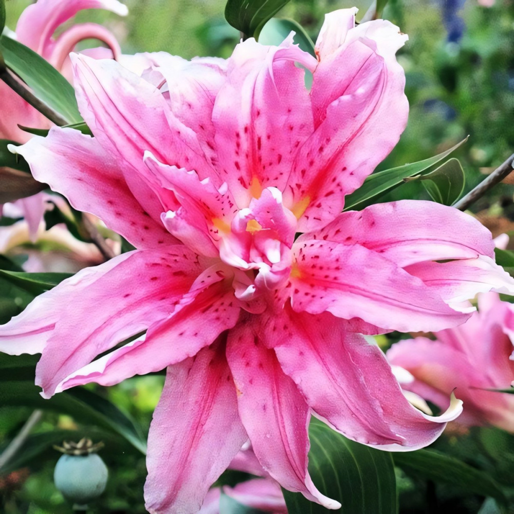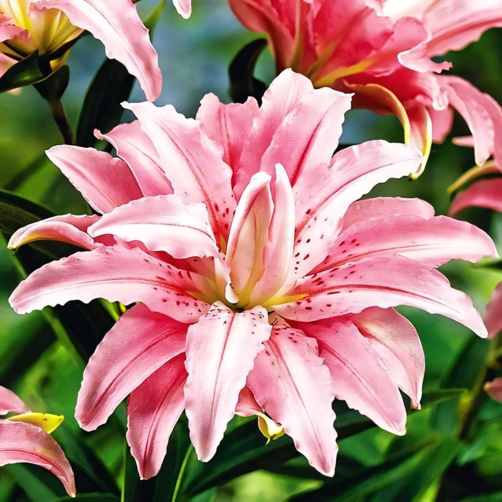 Отличается красивейшими экзотическими цветами очень крупных размеров, за что и получила заслуженную популярность среди садоводов. Данный сорт имеет роскошные махровые бутоны нежно-розового цвета с темно-розовой полосой вдоль лепестка и редким крапом. Вся эта красота сопровождается удивительно приятным ароматом. Прочные длинные стебли. Лилии Broken Heart (Брокен Херт) незаменимы для составления букетов, особенно свадебных, и для других торжественных мероприятий.