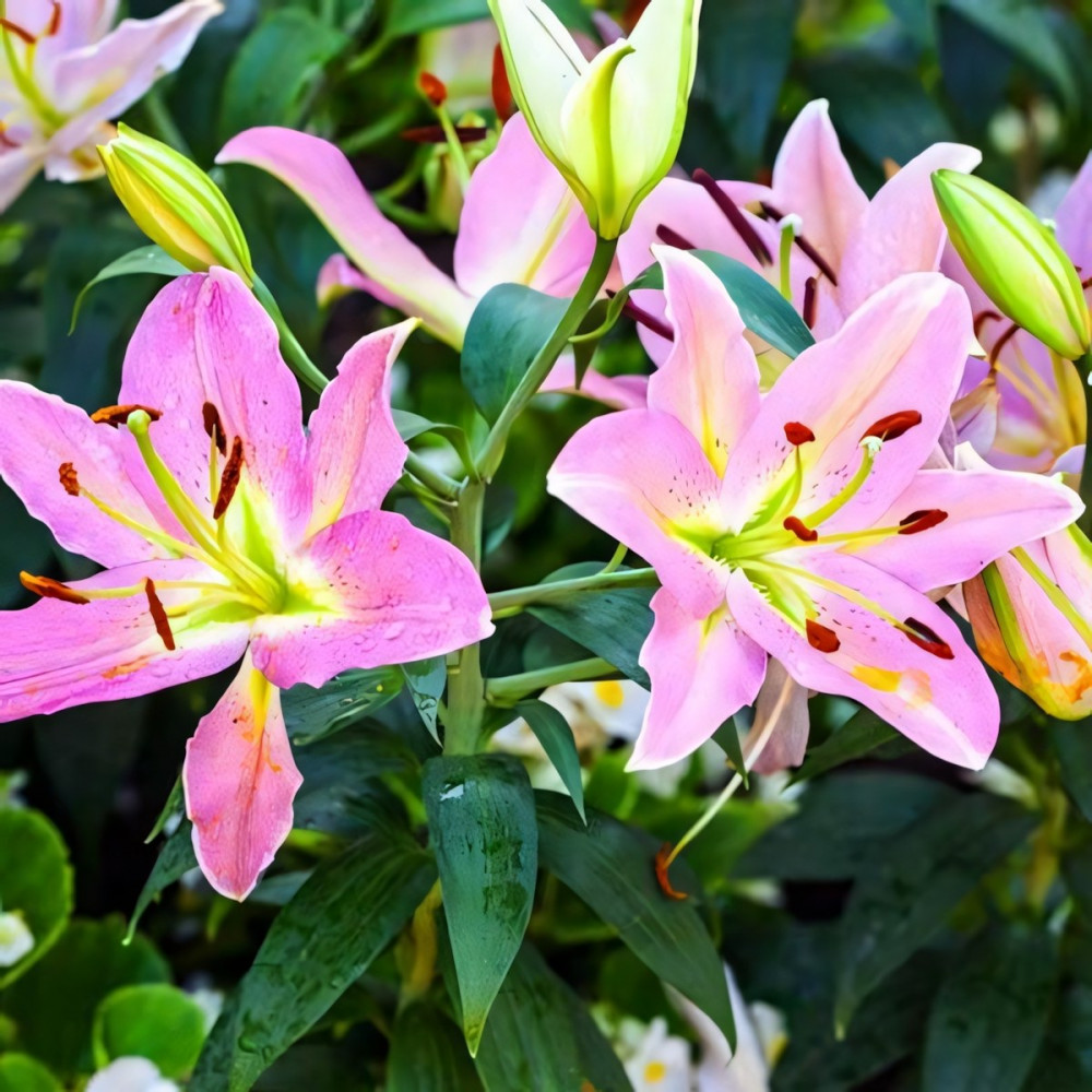 Восточные лилии создают неповторимую роскошь и обволакивают сад пьянящим ароматом. Их огромные соцветия-колокола в разы крупнее, чем у азиатских, видовых или тигровых лилий, а яркая расцветка с характерным крапом делает их самыми узнаваемыми среди остальных групп лилий.