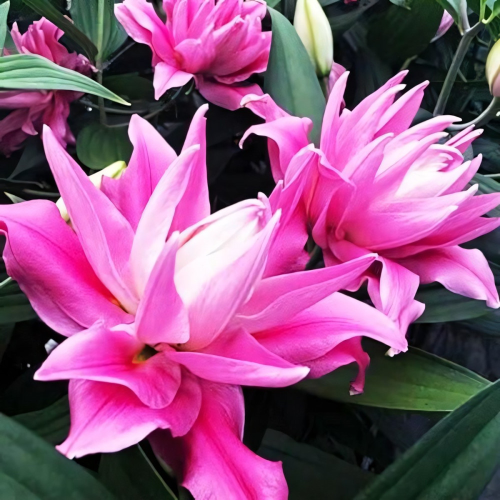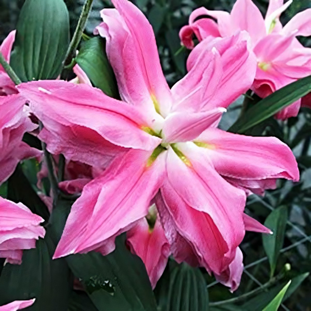 Лилия восточная Kadango (Каданго)-махровая, ярко-розовая лилия Каданго относится к группе Восточные гибриды. Цветы ароматные диаметром 21 см, высота 120 см. Всем восточным лилиям необходимы солнце или полутень, сухая хорошо дренированная почва, регулярные подкормки комплексными удобрениями. Зимуют восточные лилии в сухой почве с укрытием.