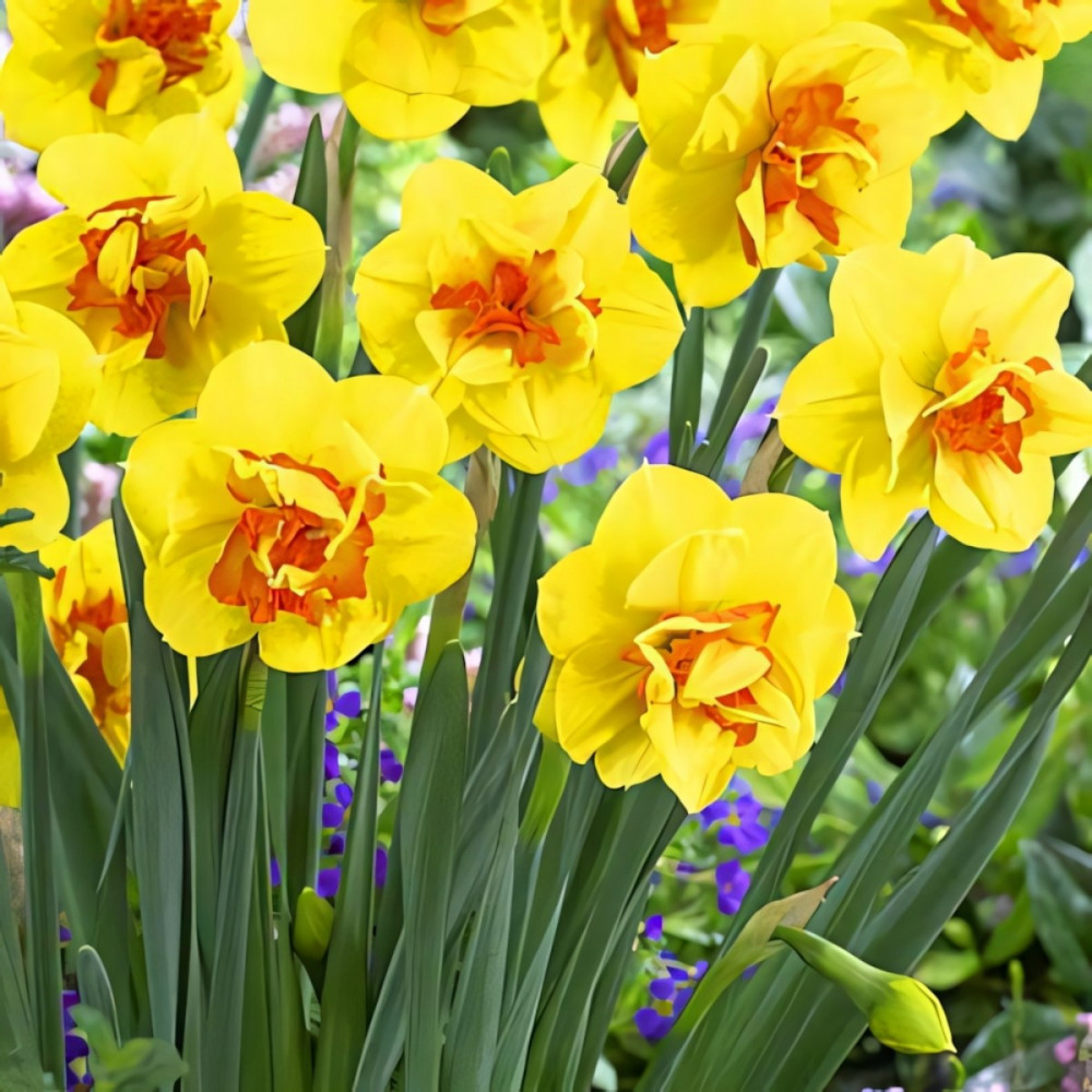 Нарцисс махровый Тамар Файер – настоящий весенний привет от ласкового солнца. Желтые лепестки оттеняет махровая коронка, окрашенная в желто-оранжевые тона. Высота растения варьируется от 35 до 65 см. Идеально подходит для декорирования цветников и выгонки на срезку.