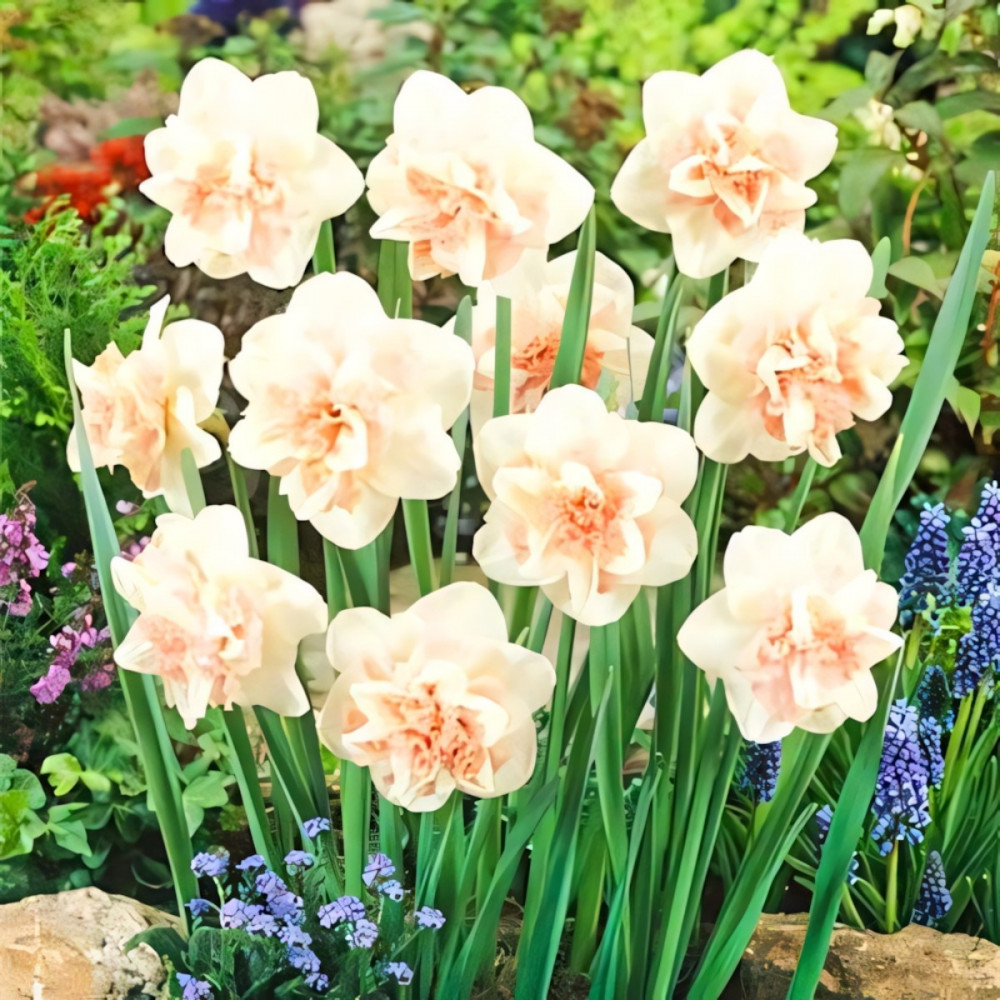Нарцисс махровый Рози Клауд - розовое облако красоты и блаженства на садовом участке. Расцветает растение в апреле или в мае, в течение двух недель жемчужно-розовые лепестки объемных махровых бутонов украшают миксбордеры, газоны, клумбы, альпинарии.