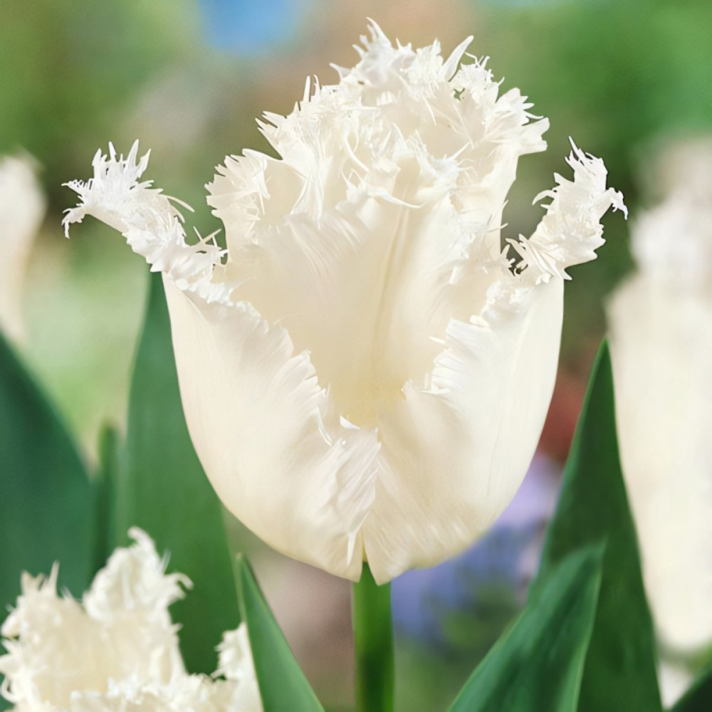 Тюльпан Дайтона — удивительный цветок, чьи белоснежные лепестки с густой бахромой напоминают лебединые крылья. Цветет в апреле-мае. Сорт Tulipa Dautona эффектно выглядит в групповых посадках при создании садовых и парковых цветочных композиций, долго сохраняет свежесть в срезке.