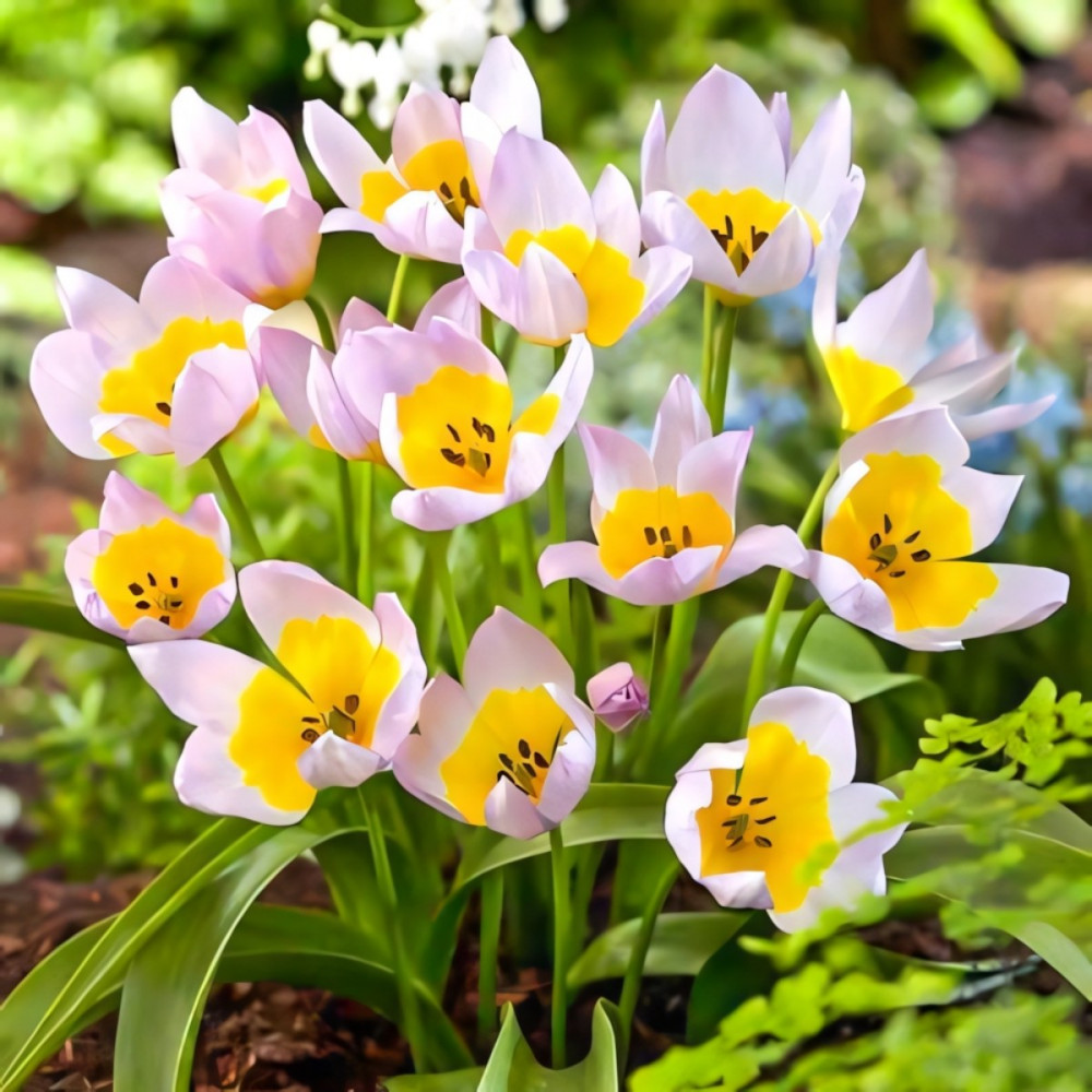 Тюльпан ботанический Лилак Вандер — знаменитый скальный тюльпан. Цветки с нежными карамельно-розовыми лепестками и желтым центром по форме бокала больше похожи на очень крупные крокусы. На ярком солнце бокальчики раскрываются полностью, образуя звезду, а в пасмурную погоду или на закате вновь смыкают лепестки. Сорт образует невысокие цветоносы около 20 см и шикарно смотрится в групповых посадках на весенней клумбе или при выгонке в контейнере.