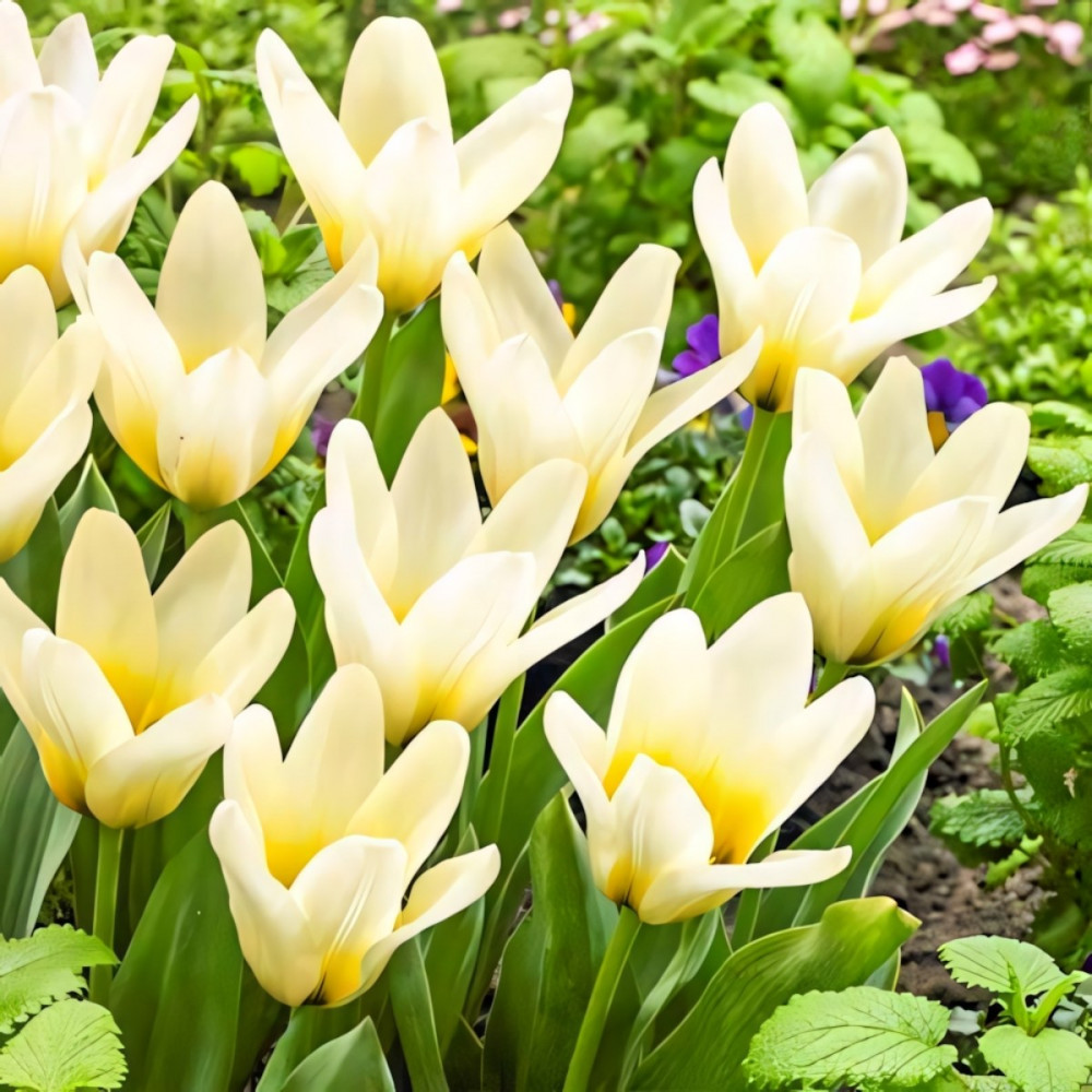 Тюльпан Грейга Концерто – невероятно притягательный сорт, с цветами бело-молочного цвета. Лепестки заостренные кверху, слегка гофрированные по краю. При полном роспуске цветка открывается растушеванная оранжевая серединка, что делает похожим тюльпан на классический нарцисс. Сорт относится к зимостойким видам.