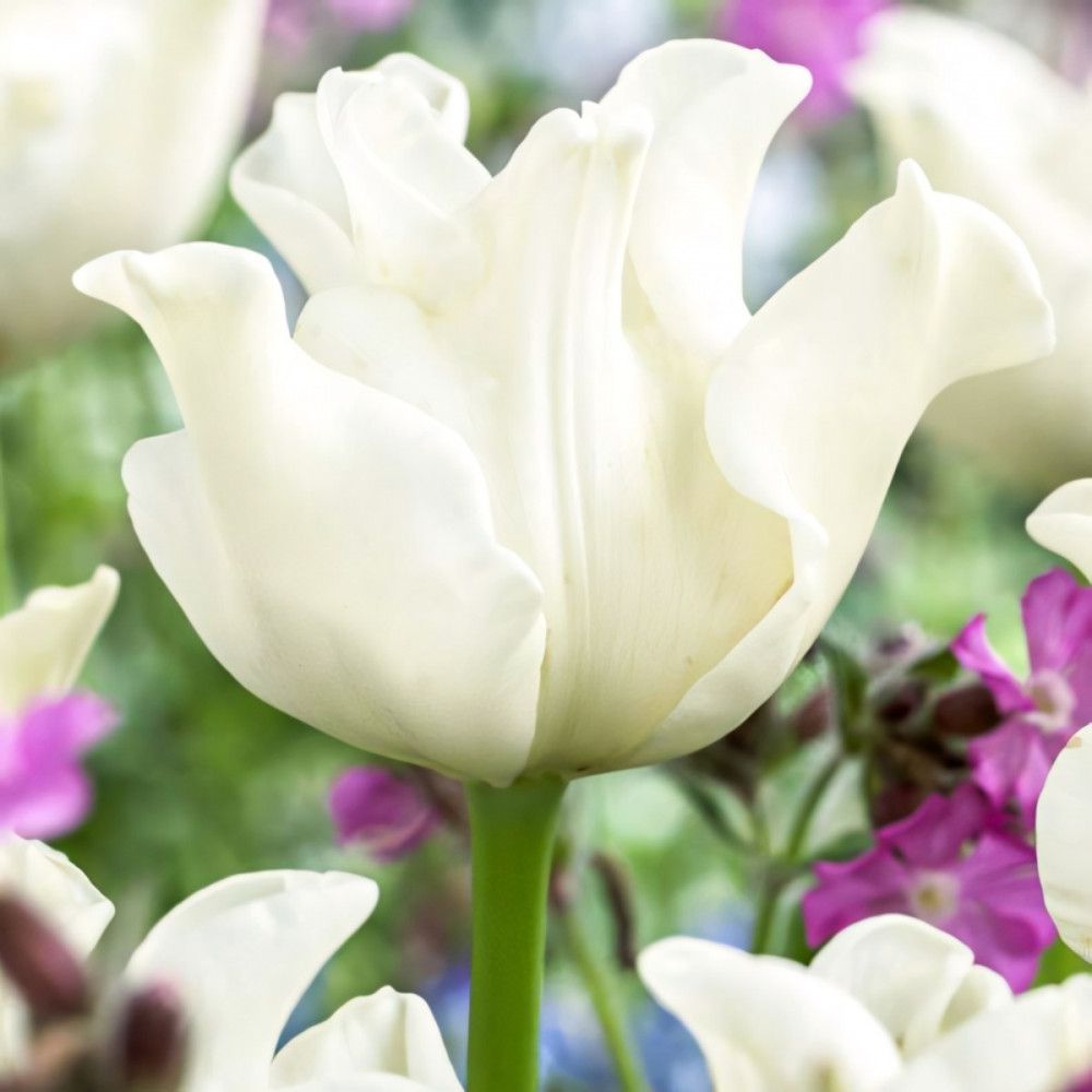 Тюльпан Либерстар — чрезвычайно декоративный сорт с белоснежными, словно фарфоровыми лепестками и эффектным бокалом в форме короны с шестью лучами. Относится к премиальному классу «Триумф» для любительского цветоводства и выгонки под срезку. Крепкие растения, высокие цветоносы, крупные бокалы, простая агротехника и прочие достоинства «триумфального» сорта дополняются высокой морозостойкостью и отличным коэффициентом размножения. Сорт станет не только украшением сада, но и настоящей находкой для начинающих и продвинутых садоводов: первые оценят оригинальный внешний вид, вторые — предсказуемый результат цветения и стойкие сортовые характеристики. Цветы распускаются в апреле-мае в зависимости от сроков наступления весны.
