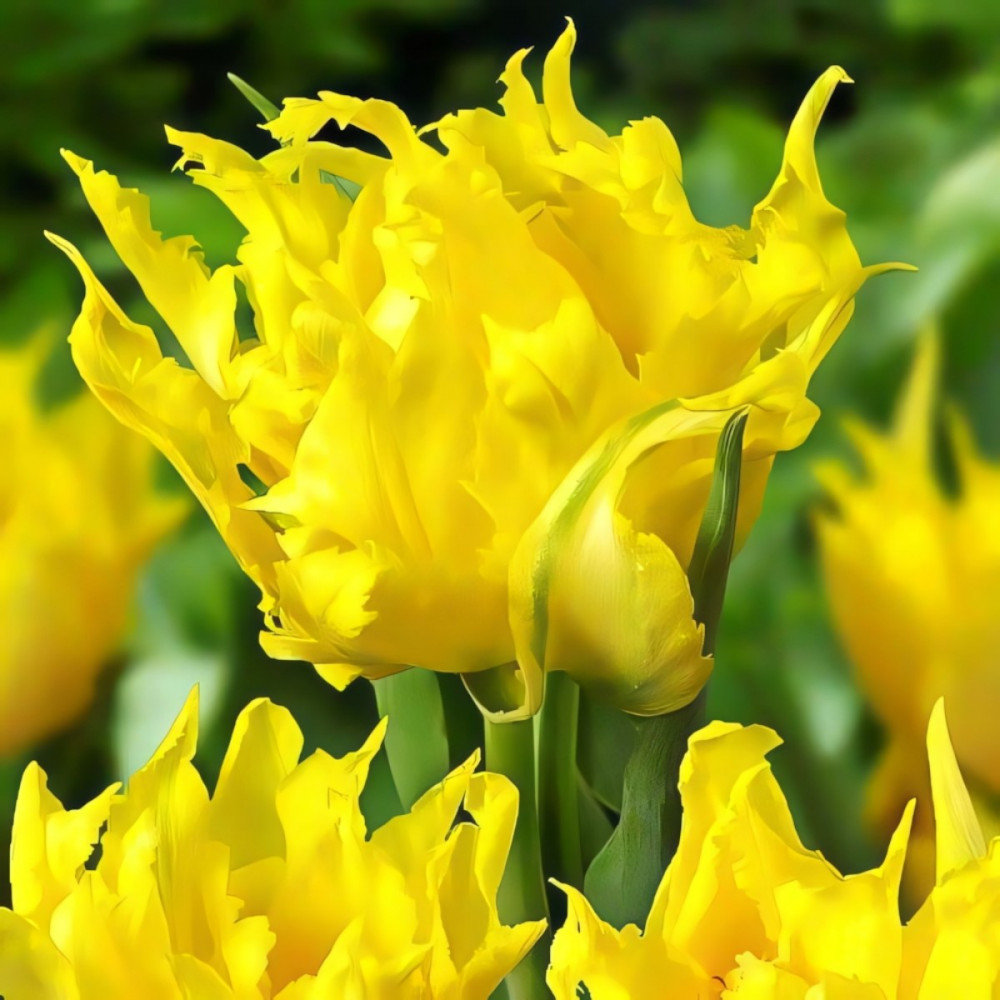 Эффектные тюльпаны Monte Spider имеют яркую пронзительно-желтую окраску и невероятно привлекательную форму. Изящные махровые цветы с лепестками, напоминающими лилию – очень эффектно смотрятся в садовых клумбах. Цветение наступает в течение мая, высота цветоносов – около 50 см.