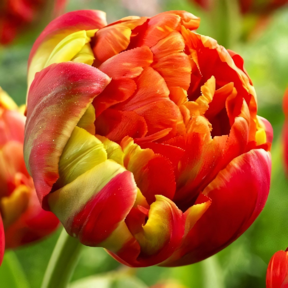 Тюльпан Принцесс Юник - это луковичный многолетник, который относится к классу Махровые поздние, цветение его приходится на последний месяц весны. Оригинальный полностью махровый цветок имеет яркую окраску – лепестки красные со штрихами и полосами желто-зеленого оттенка. Очень броско и ярко. Собирая коллекцию махровых тюльпанов для сада, нельзя пройти мимо сорта Princess Unique, ведь красота этого цветка совершенна.