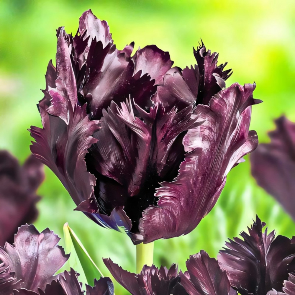 Встрепанные перьевидные лепестки, бутон, похожий на хвост попугая, окрас, напоминающий цвет старого бургундского вина – это описание не передает и сотой доли очарования уникального тюльпана Фрозен Найт. В переводе с английского его название можно перевести, как «ночной мороз», что связано с лепестками цветка, украшенными иглистой, гофрированной бахромой, отсвечивающей при свете луны багряными красками.